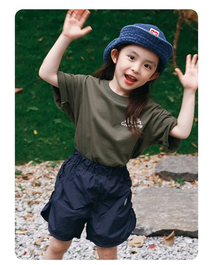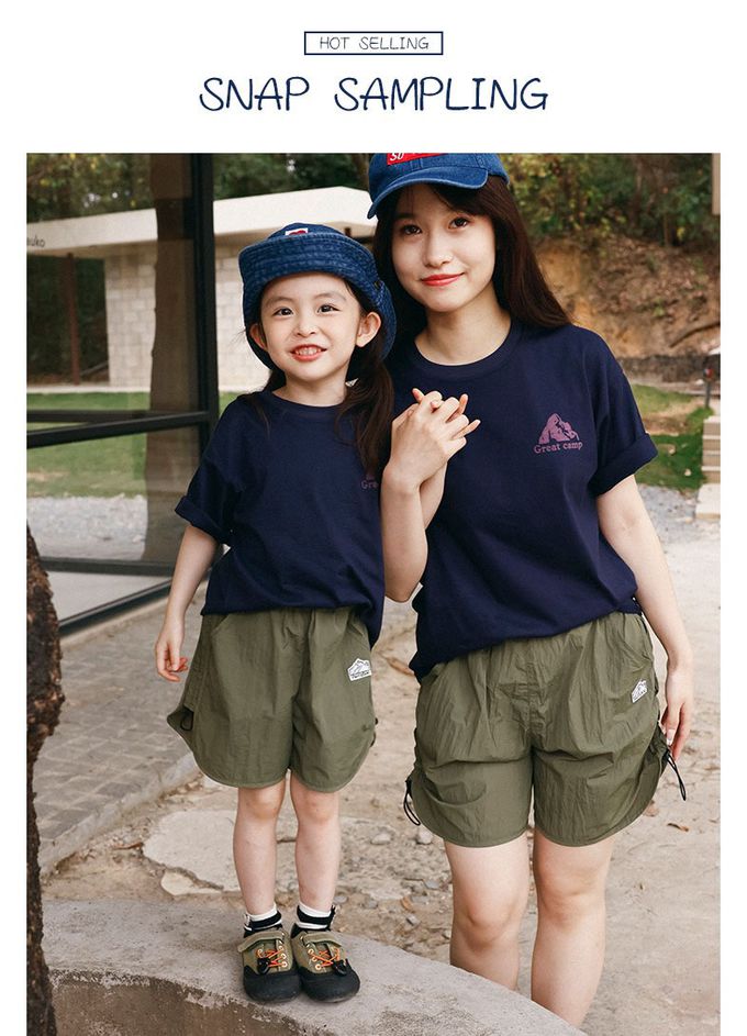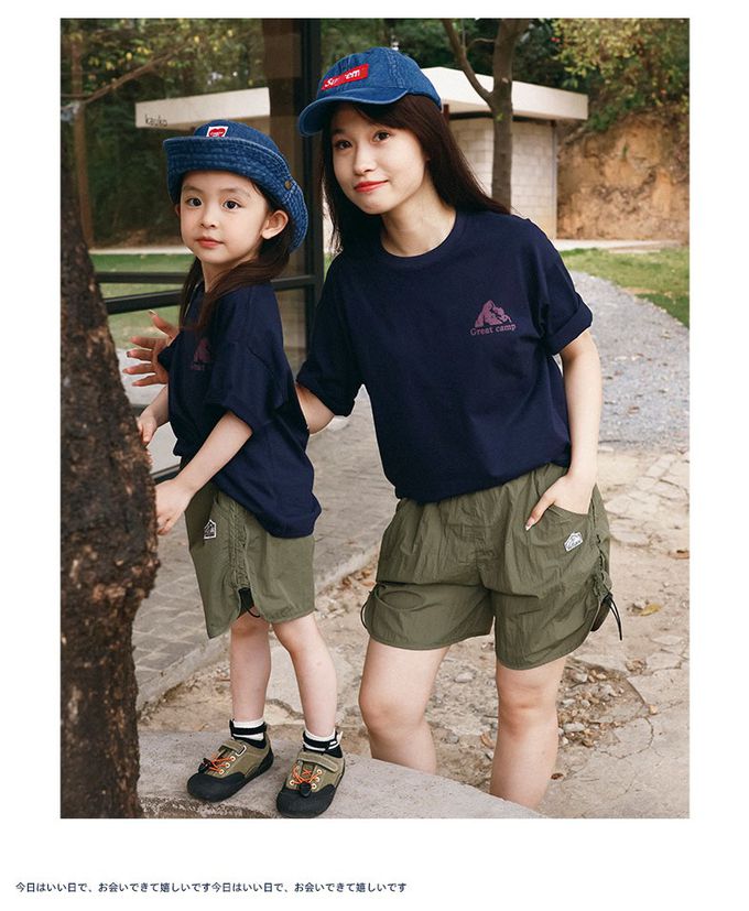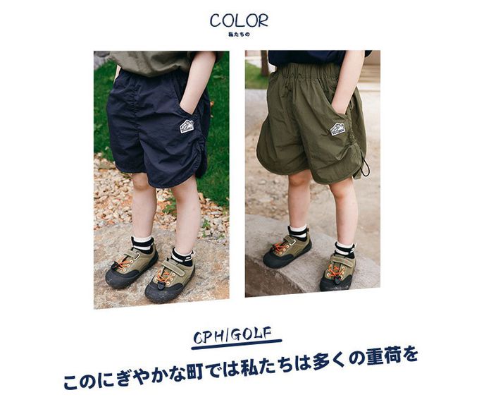 Y B S - 防潑水速乾輕薄側抓皺短褲-親子款-藏青