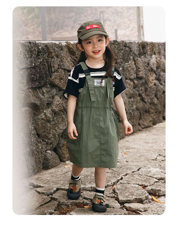 山系必備工裝吊帶洋裝-卡其色