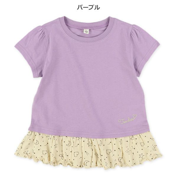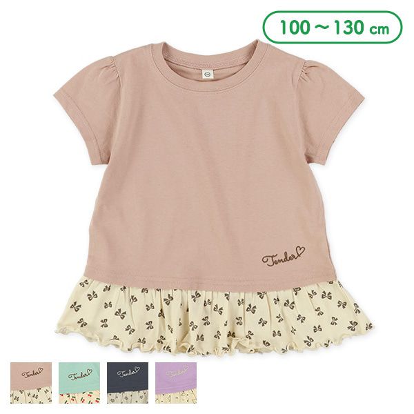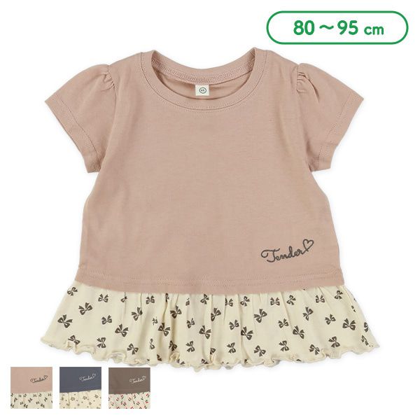 ![日本西松屋 - 華夫格異素材絲帶長袖上衣-白x藍紫]()