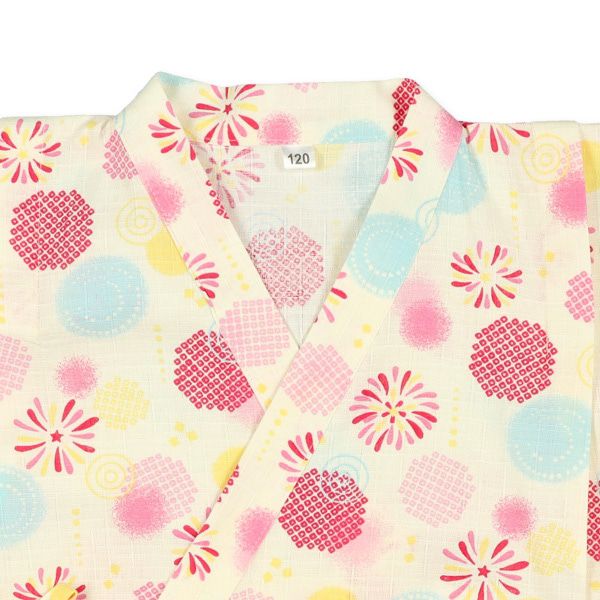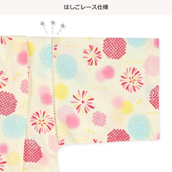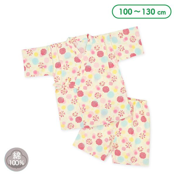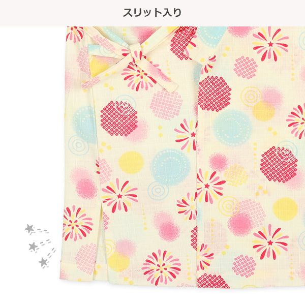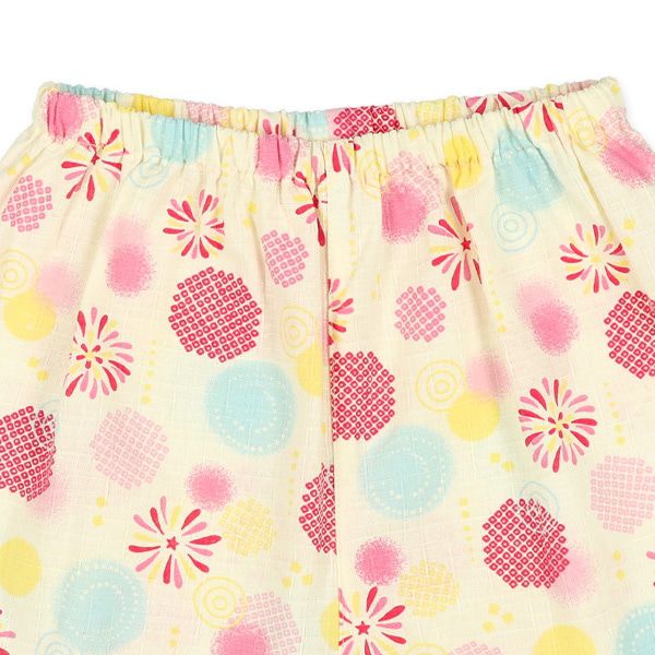 日本西松屋 - 100%棉 夏季限定甚平短袖套裝-煙火-粉紅x米杏