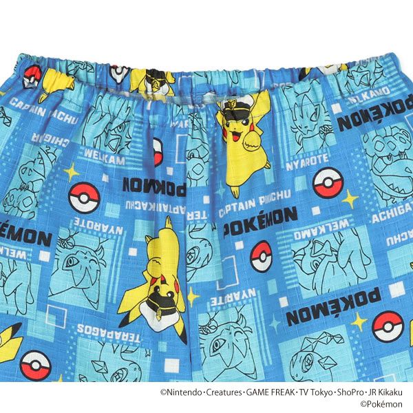 日本西松屋 - 100%棉 夏季限定甚平短袖套裝-卡通人物寶可夢-水藍
