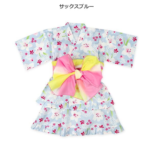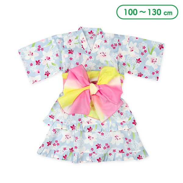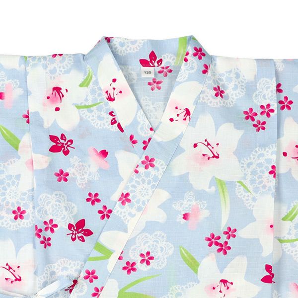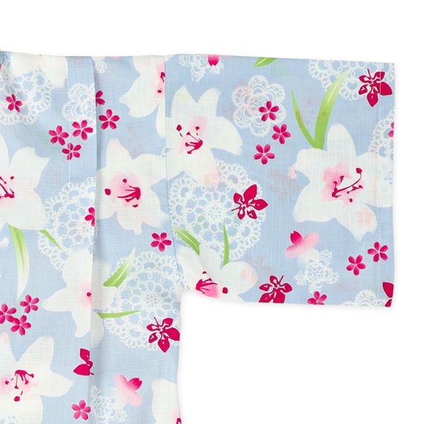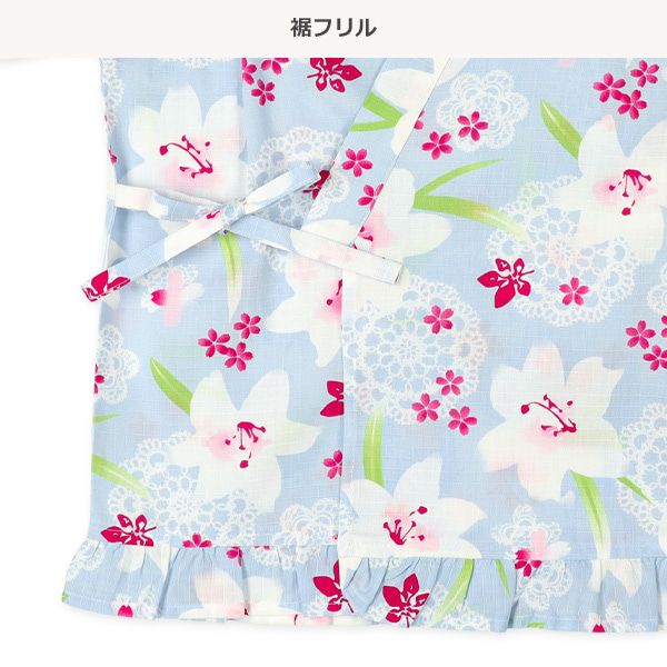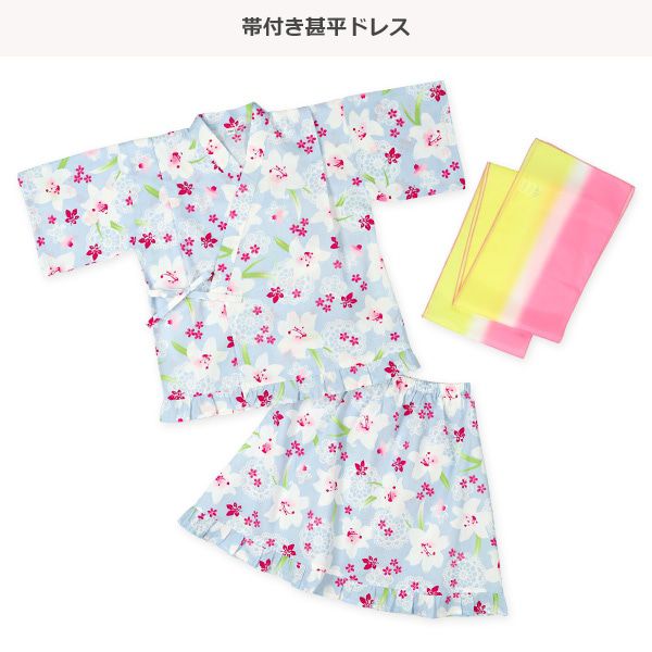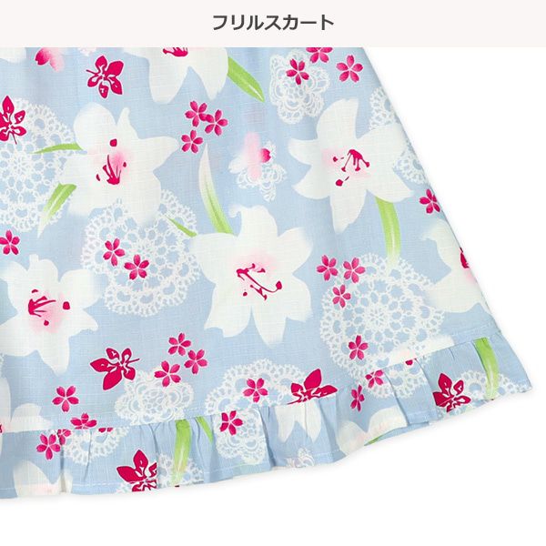 日本西松屋 - 100%棉 夏季限定甚平短裙套裝(附腰帶)-百合花-淺藍