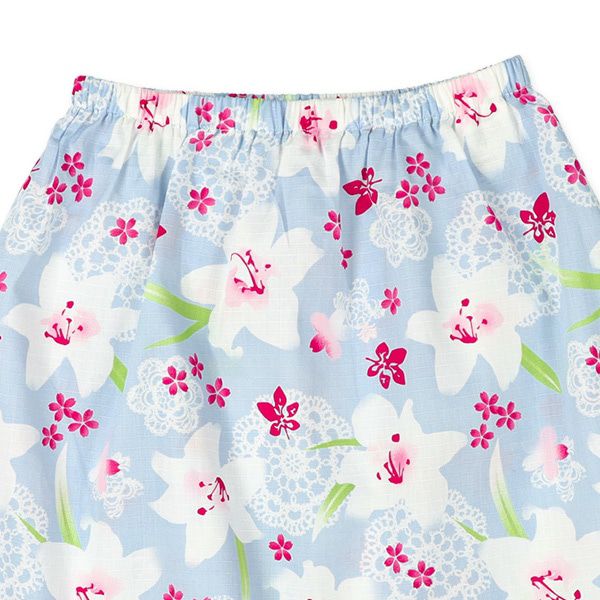 100%棉 夏季限定甚平短裙套裝(附腰帶) 百合花 淺藍