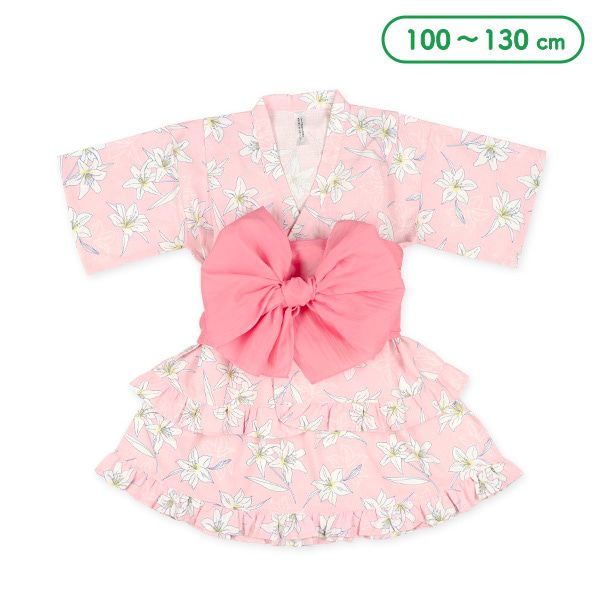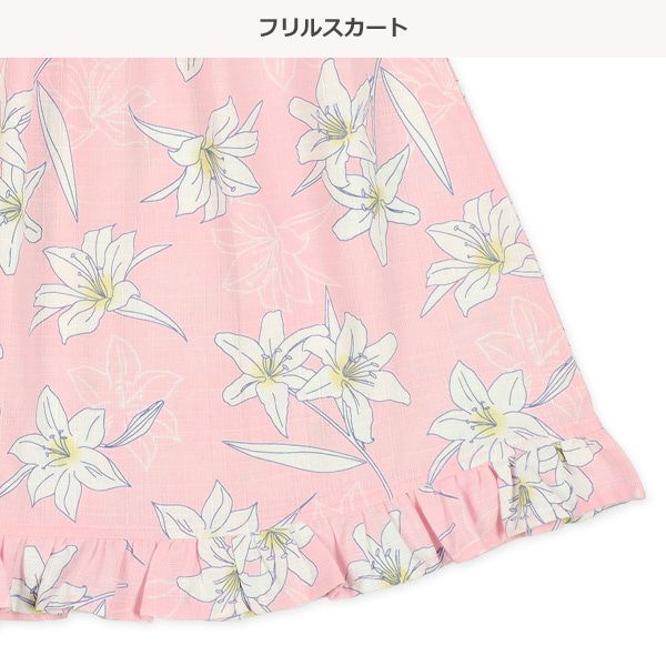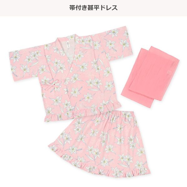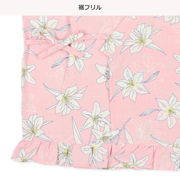 日本西松屋 - 100%棉 夏季限定甚平短裙套裝(附腰帶)-百合花-粉紅