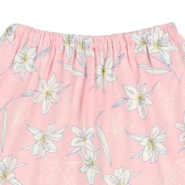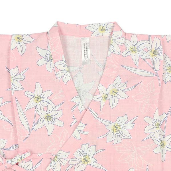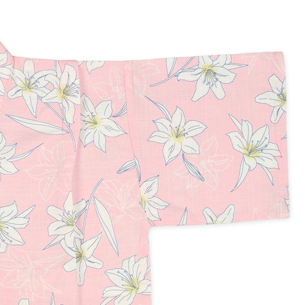 100%棉 夏季限定甚平短裙套裝(附腰帶) 百合花 粉紅