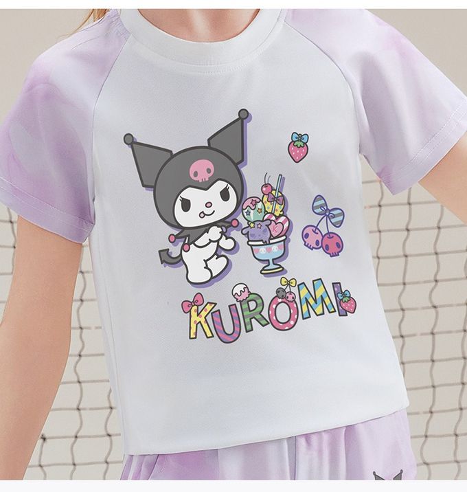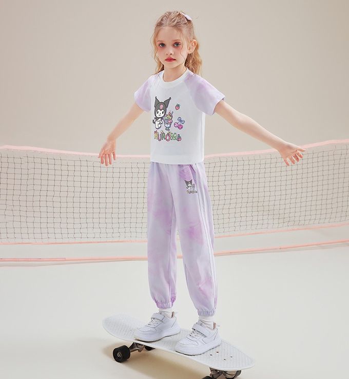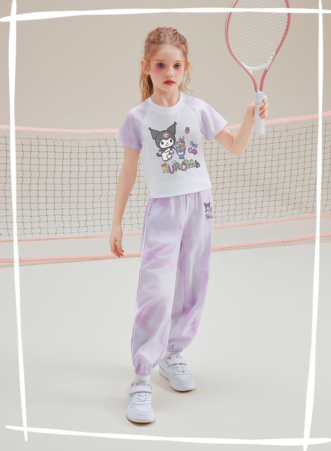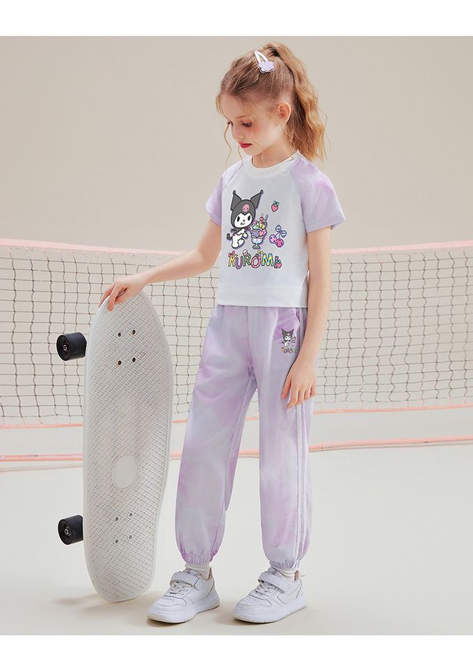 撞色暈染短袖+長褲套裝-卡通人物酷洛米-紫色