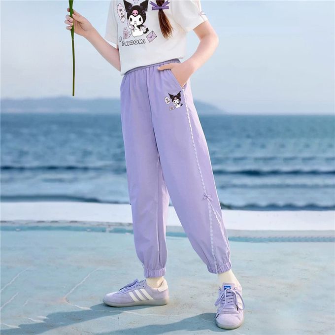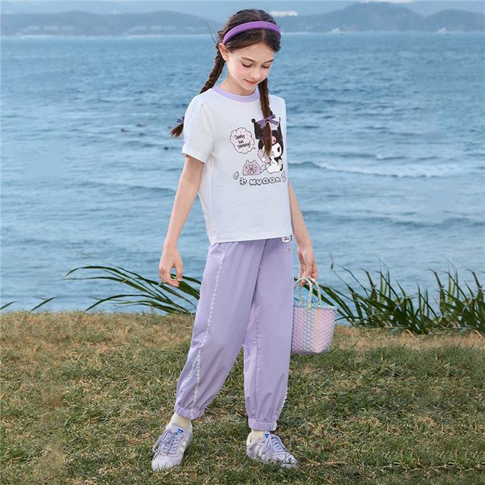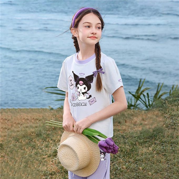 人氣卡通 - 蝴蝶結裝飾短袖+長褲套裝-卡通人物酷洛米-紫色