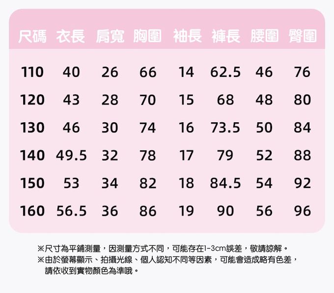 • 成分:上衣:100%棉/褲子:72.6%聚酯纖維,27.4%尼龍