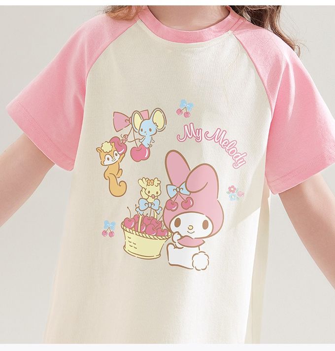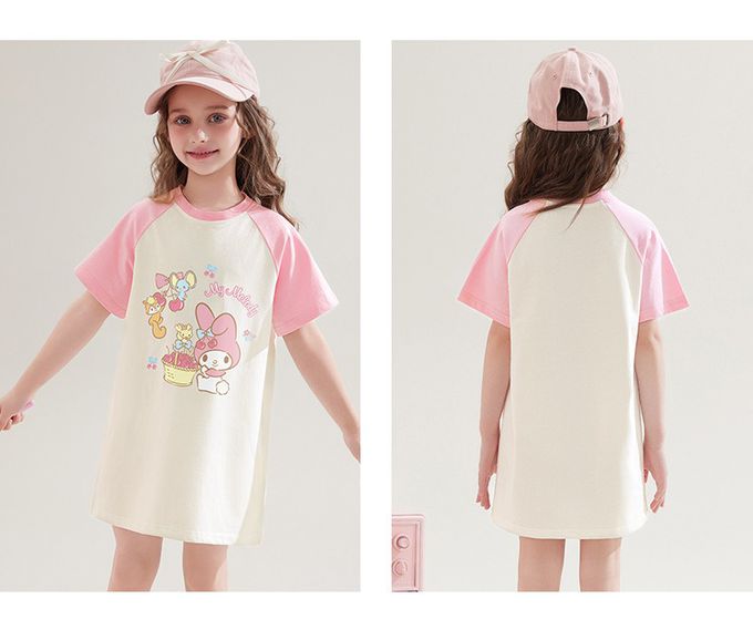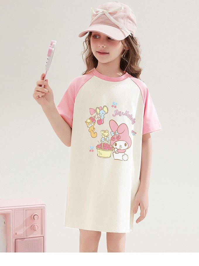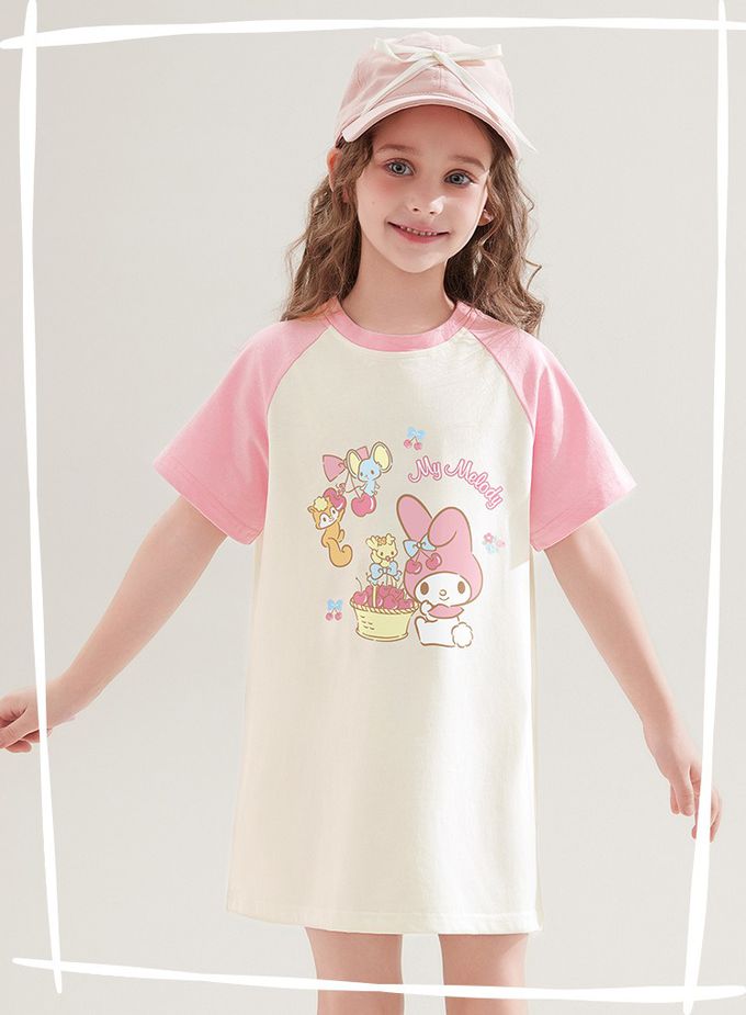 純棉圓領撞色短袖洋裝-卡通人物美樂蒂-粉色