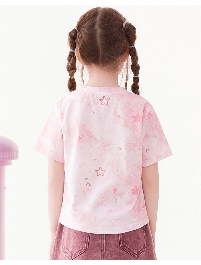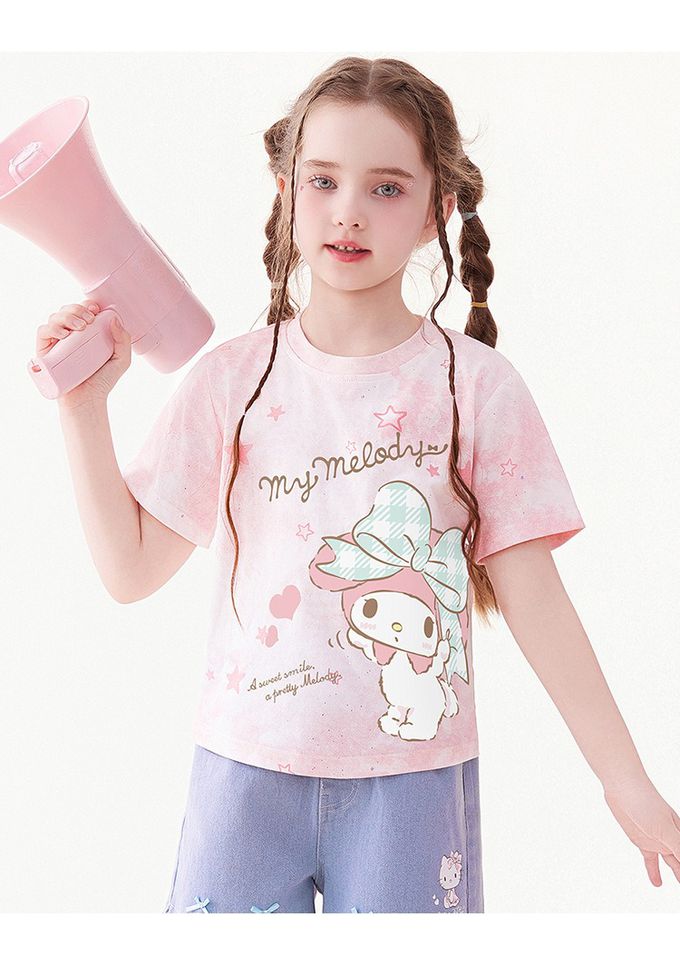 純棉圓領短袖上衣-卡通人物美樂蒂-暈染粉