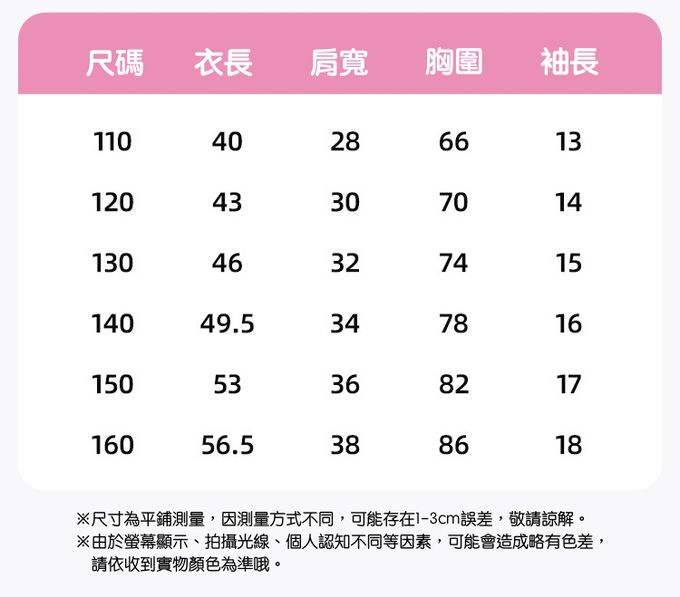 110cm、120cm、130cm、140cm、150cm、160cm