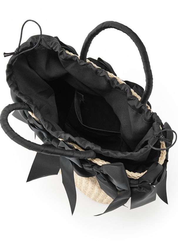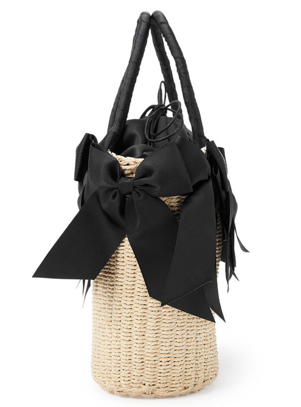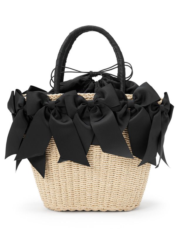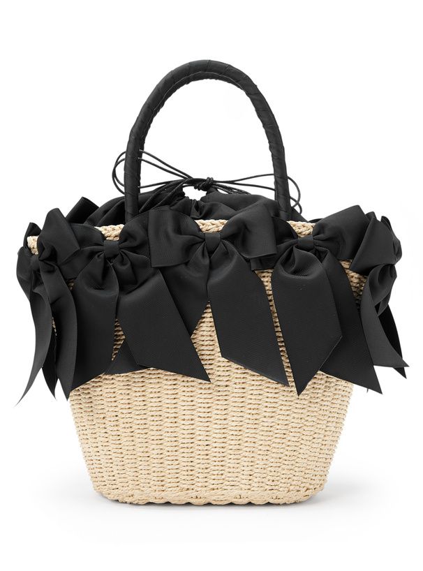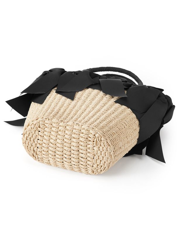 日本 GRL - 俏麗多重蝴蝶結藤編手提包-黑 (F)