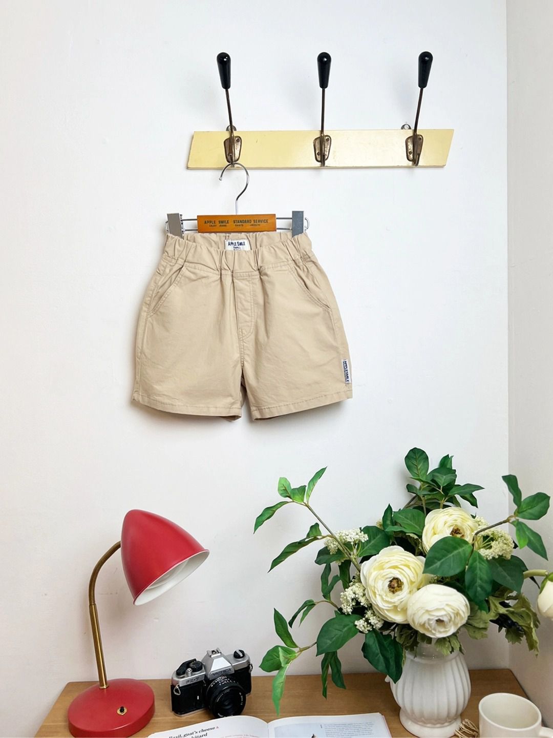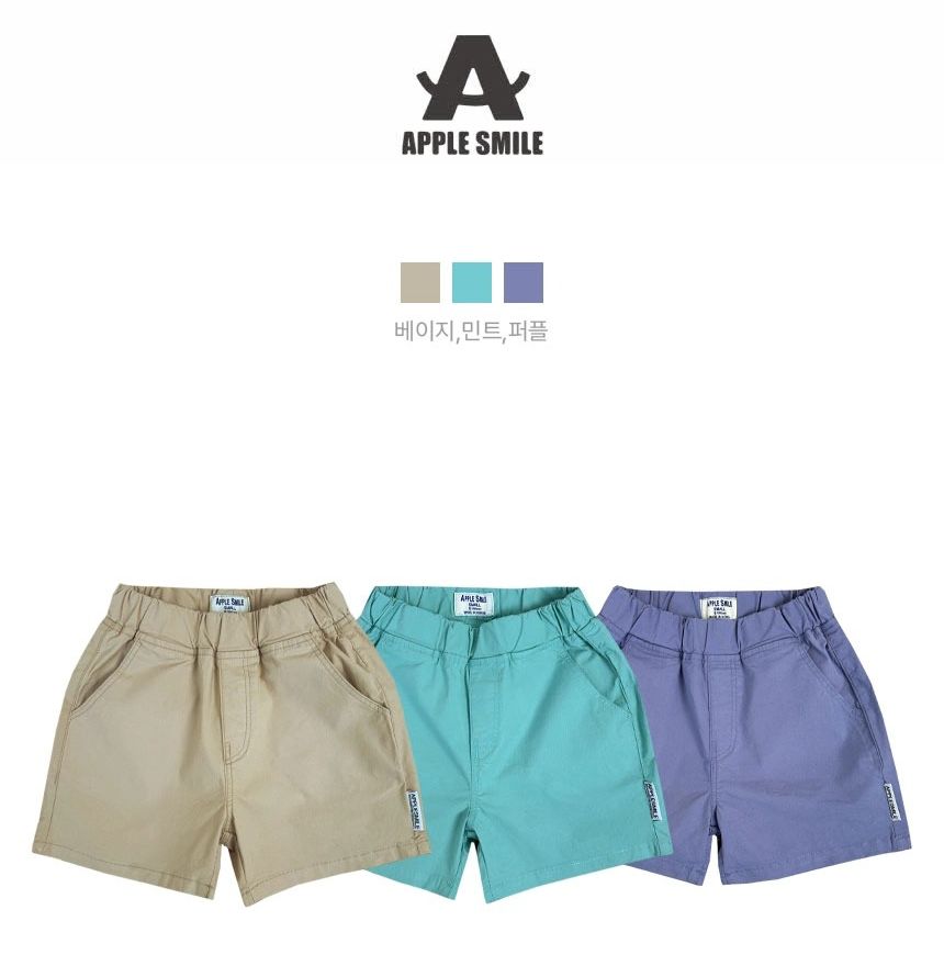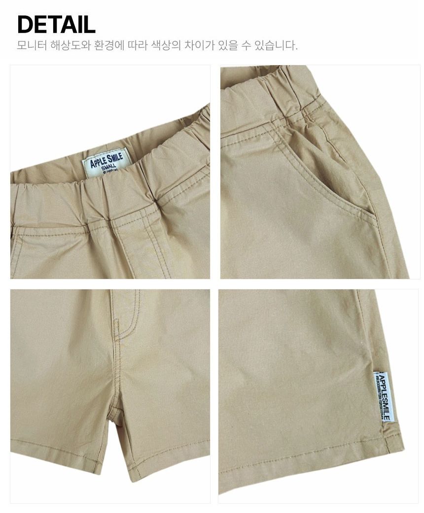 韓國 APPLE SMILE - 鬆緊腰簡約百搭素雅短褲-淺卡其