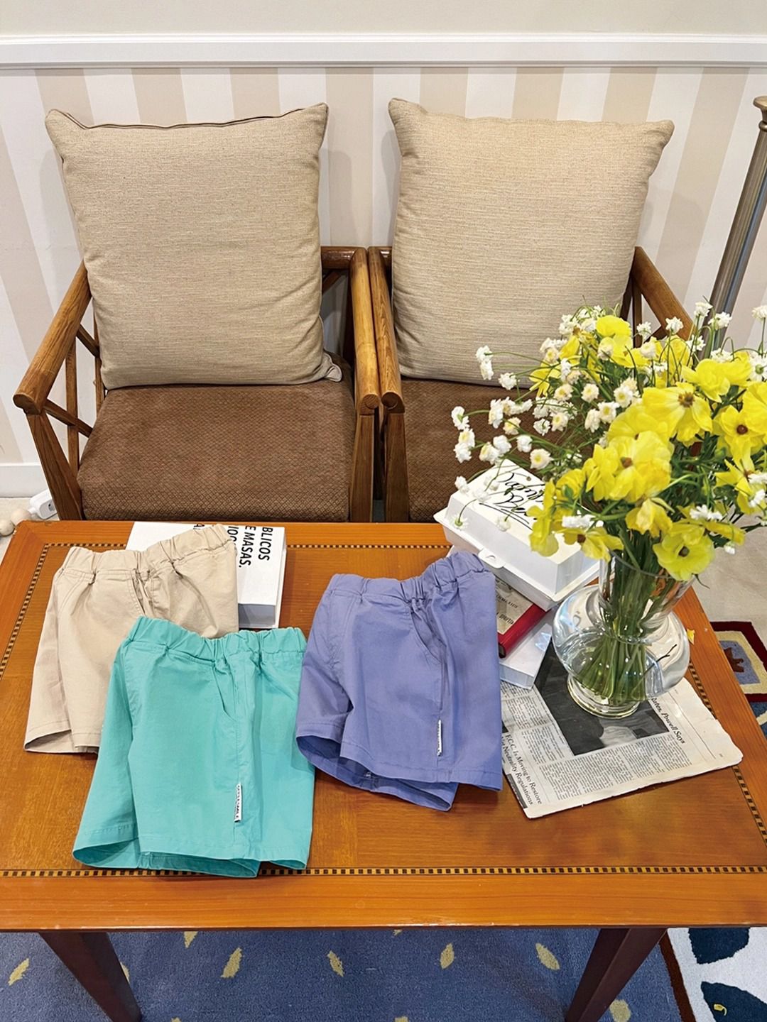 • 品名:鬆緊腰簡約百搭素雅短褲