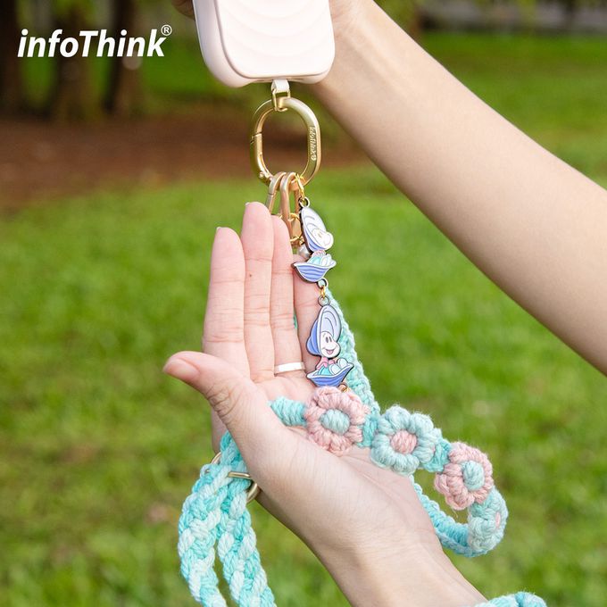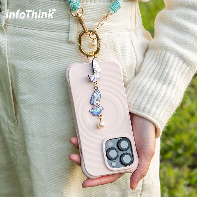 •造型五金扣環可配掛隨身耳機、證件套等小物