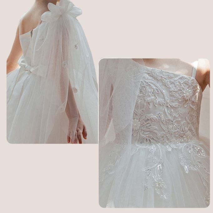 • 品名:畢業典禮歐美風浪漫斜肩細緻珠片花朵純白紗小禮服