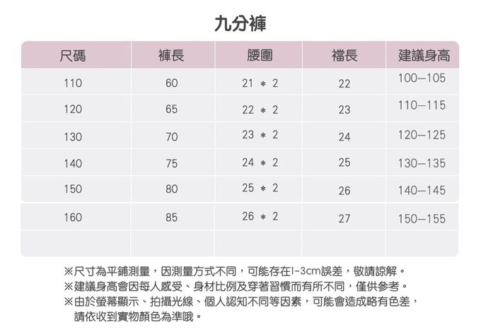 110cm、120cm、130cm、140cm、150cm、160cm