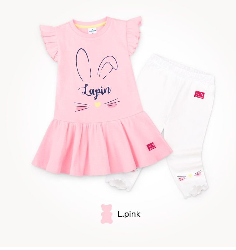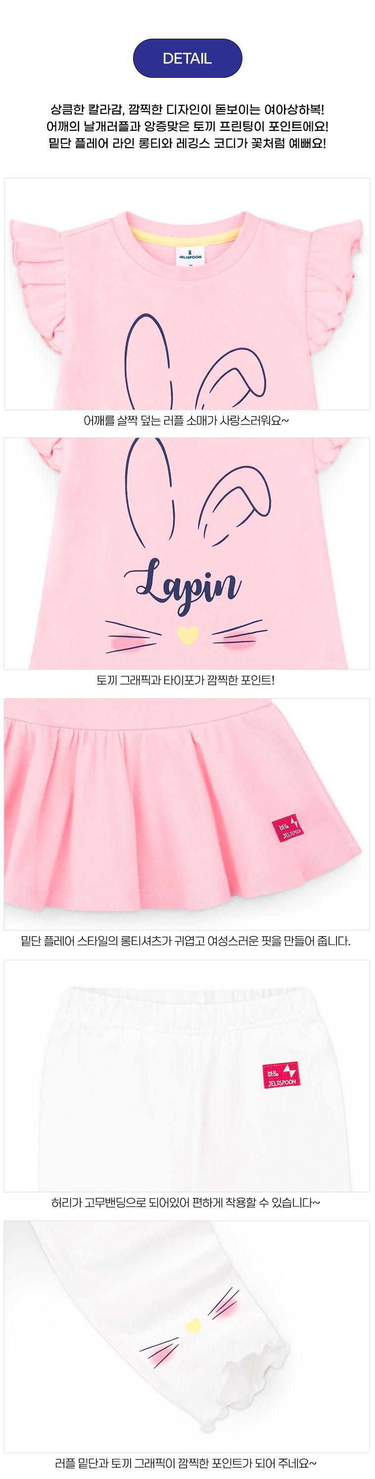 韓國 Jelispoon - 萌萌兔子飛袖上衣X內搭褲套裝-粉X白