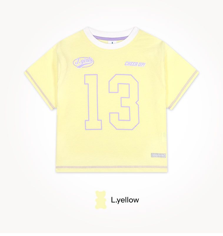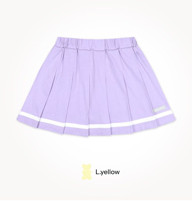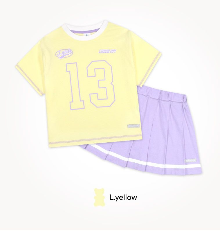 韓國 Jelispoon - 活力數字印短袖上衣X百褶裙套裝-黃X淺紫