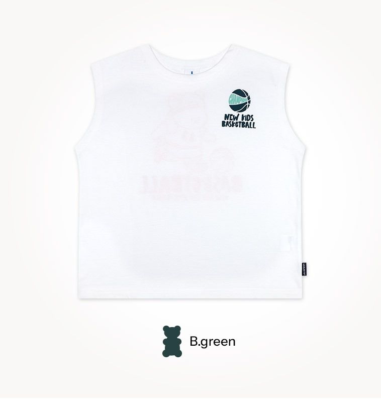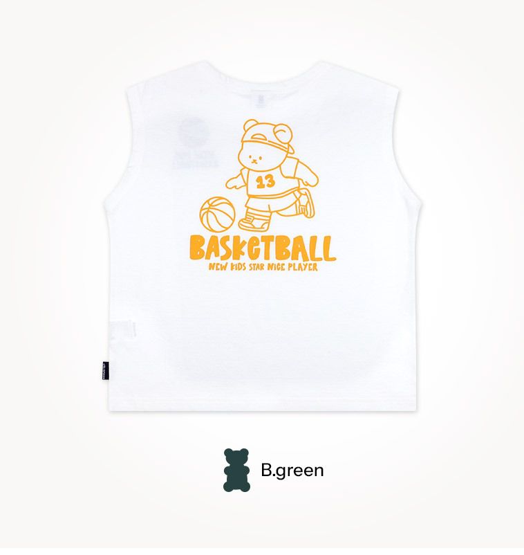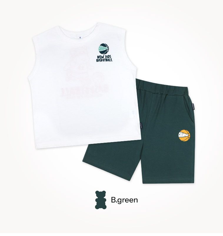 韓國 Jelispoon - 籃球熊熊無袖上衣X短褲套裝-白X墨綠
