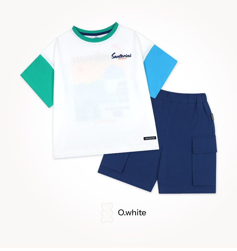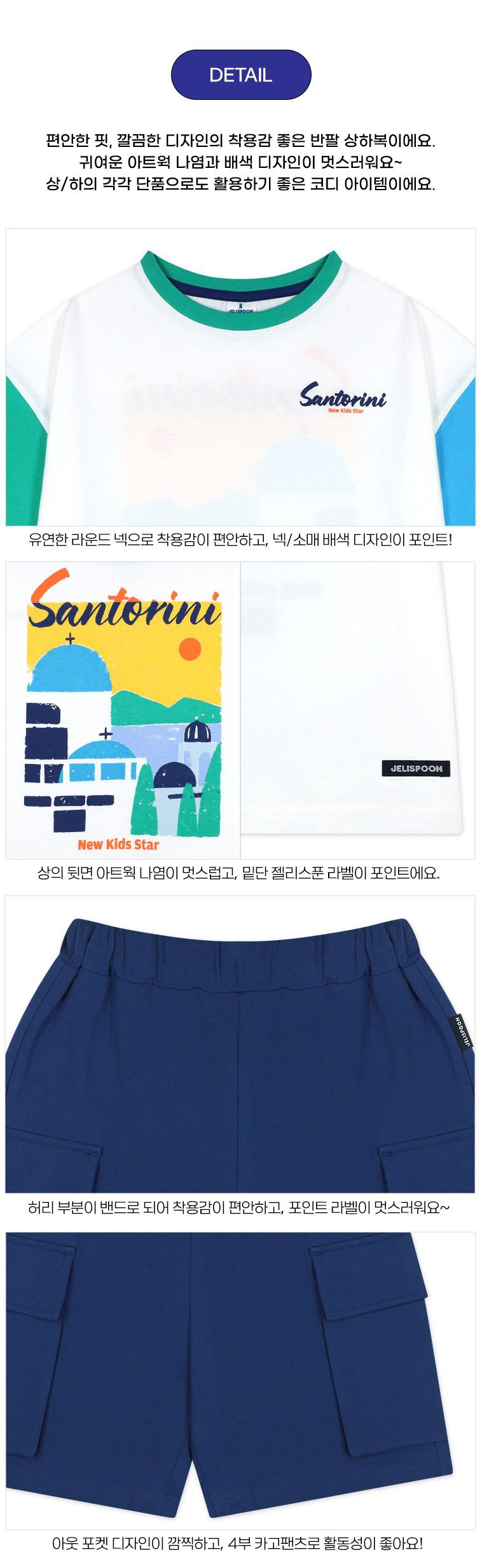 韓國 Jelispoon - 陽光地中海插畫短袖套裝-白X深藍