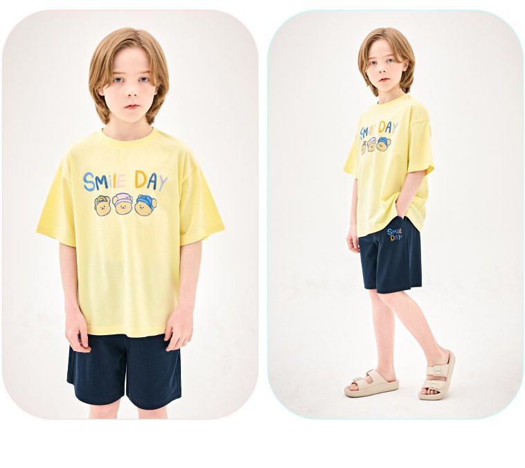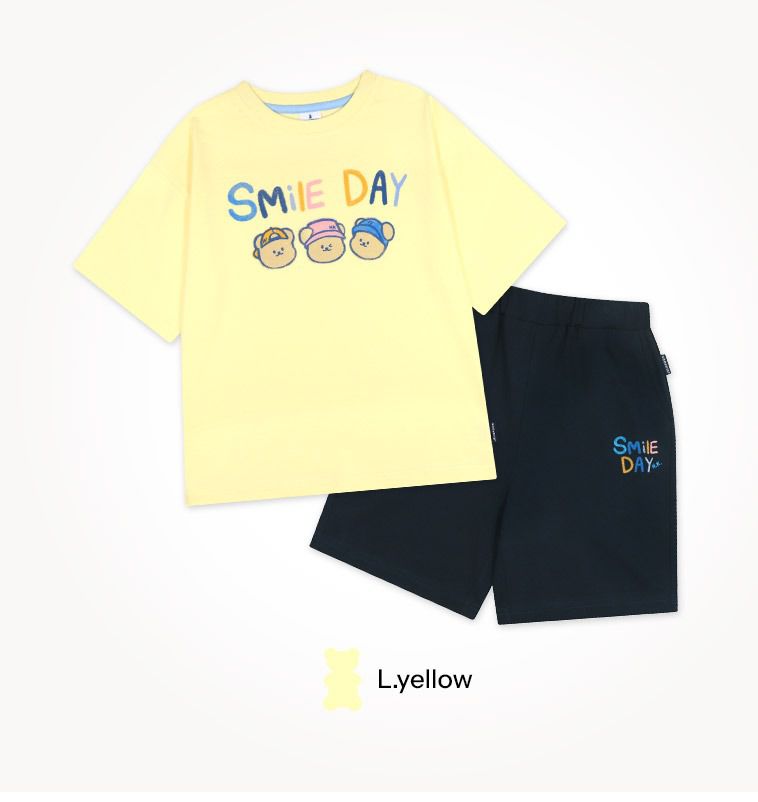 韓國 Jelispoon - 熊熊三兄弟插畫短袖套裝-黃X黑