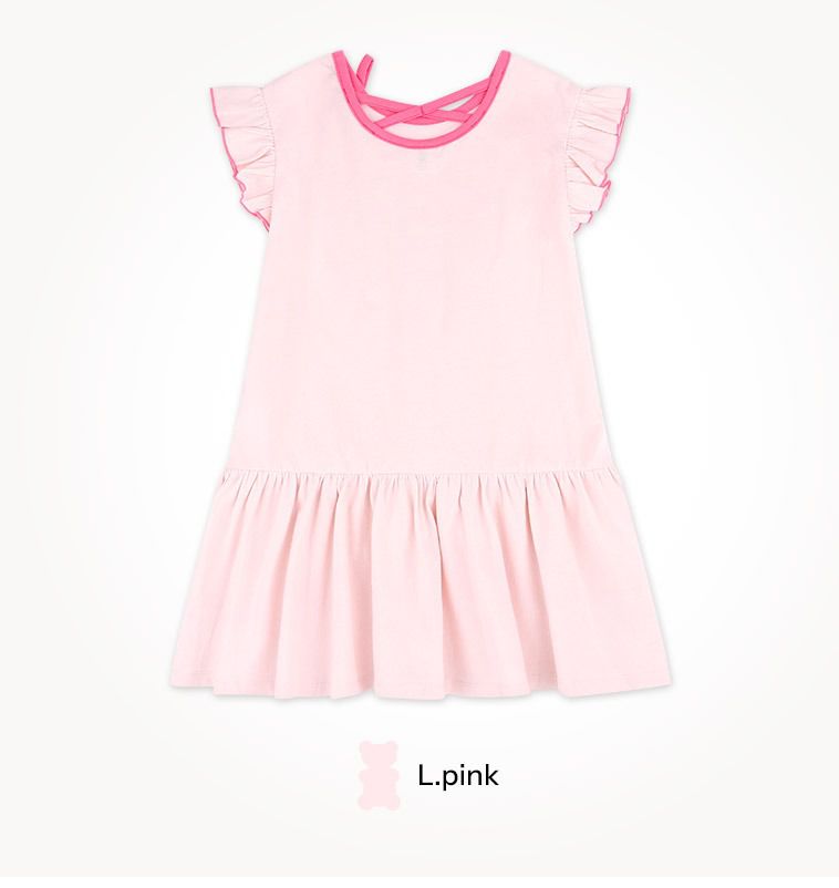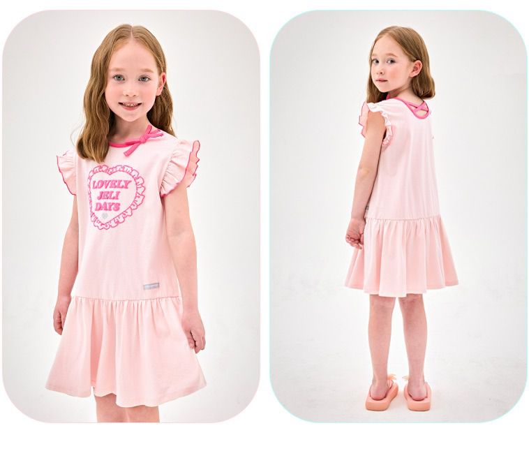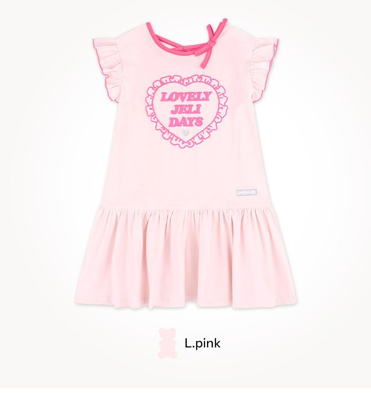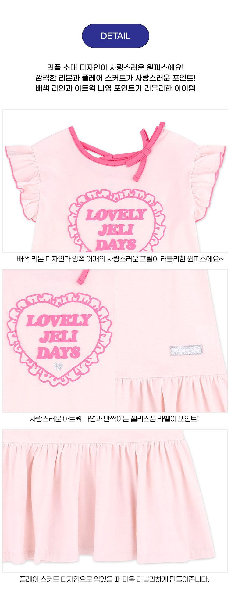 韓國 Jelispoon - 心形圖案挖背荷葉袖拼接洋裝-粉