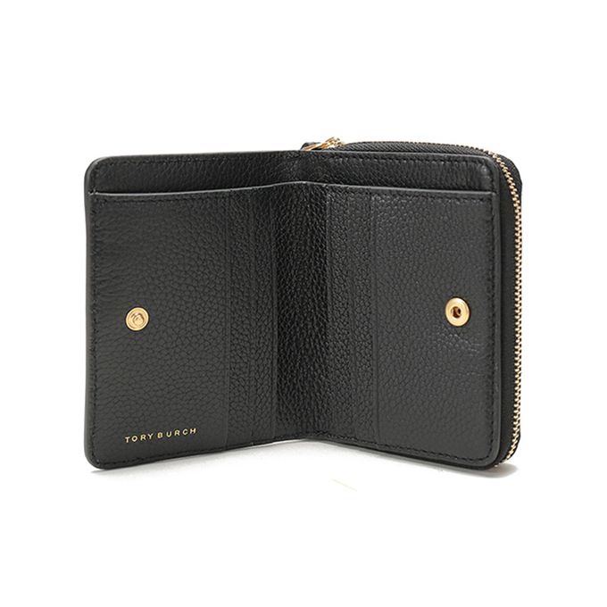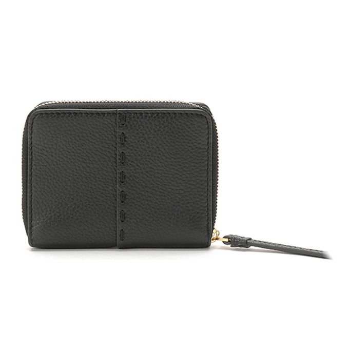 素面皮革拉鍊二折短夾 (黑色)