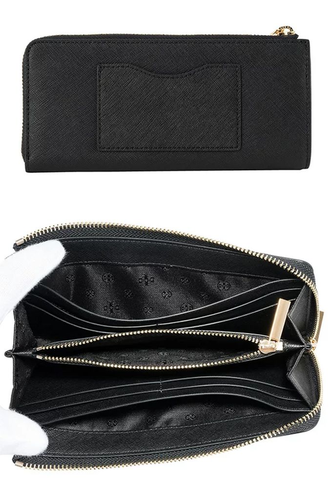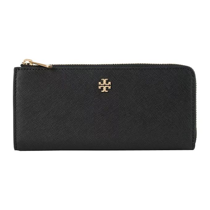 雙T-LOGO防刮皮革拉鍊長夾 (黑色)
