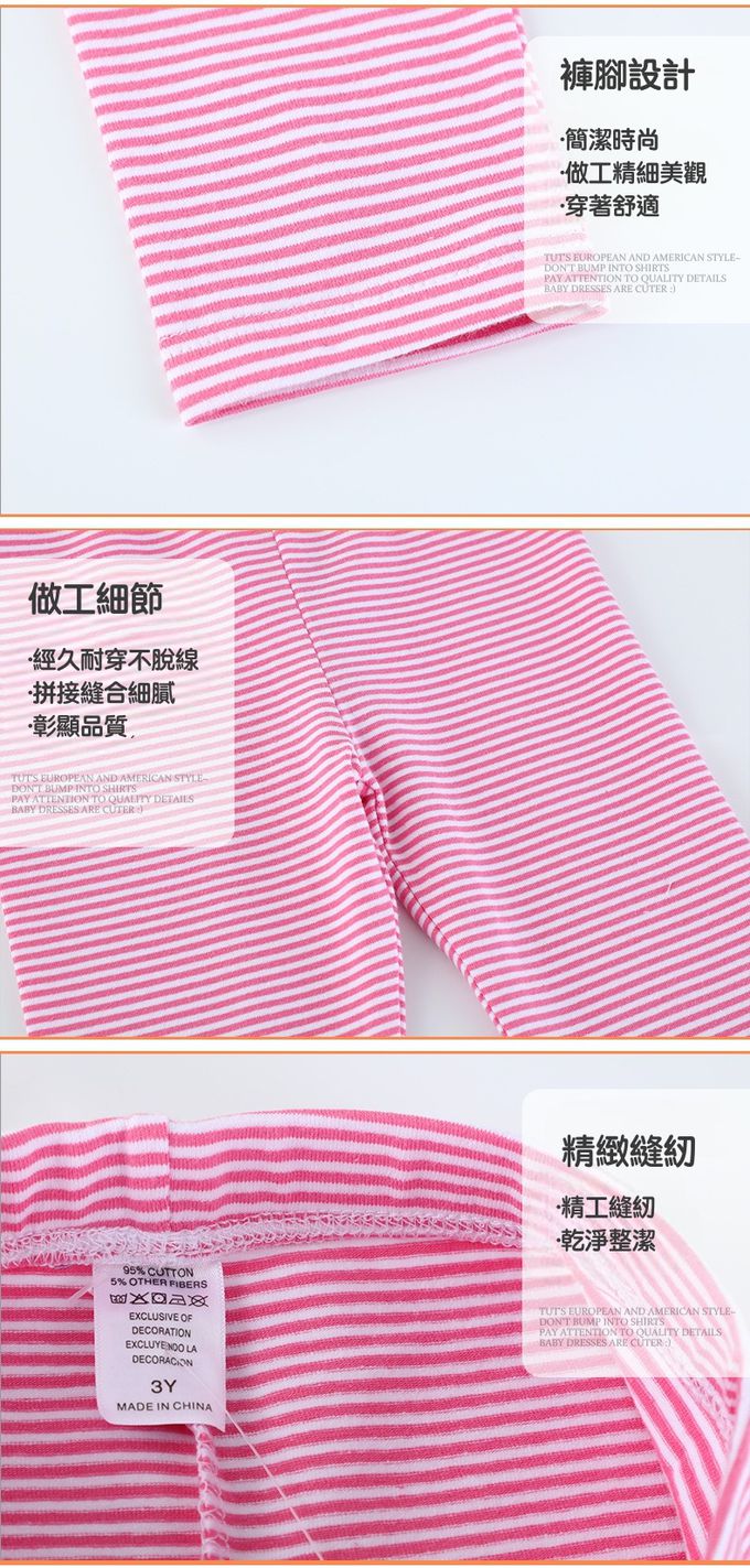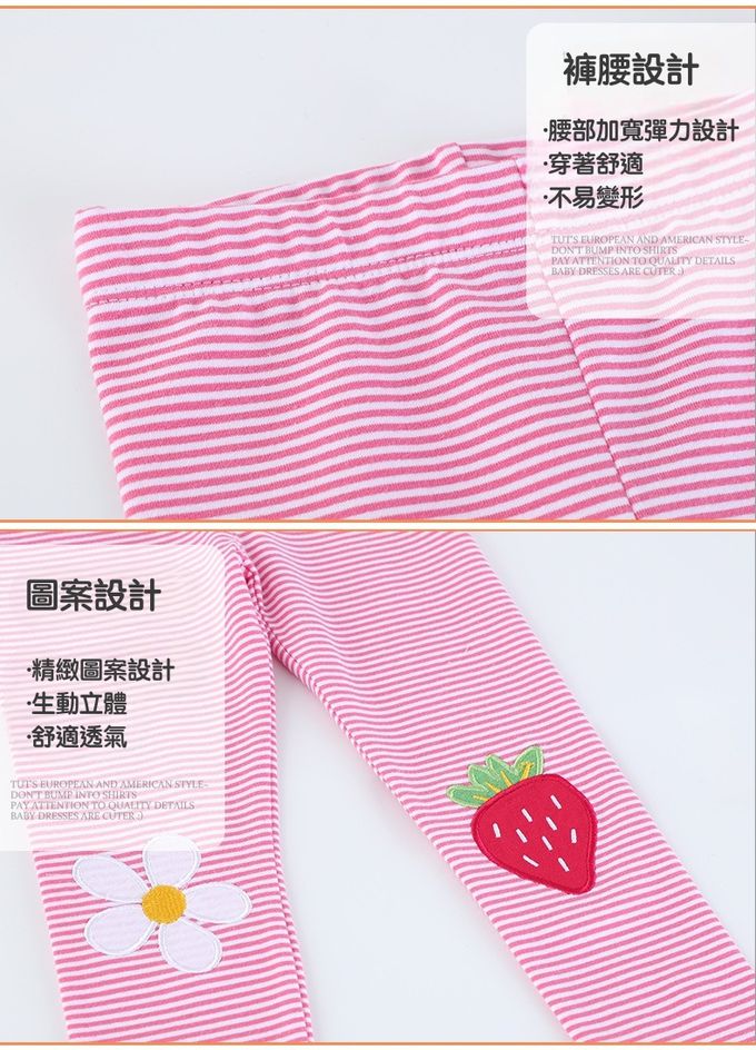 休閒腰鬆緊內搭褲-草莓花朵-粉色條紋