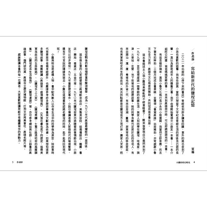 夏琳曾是書店的女主人,經營童書的經驗豐富,也是書寫不輟的創作者。透過她的筆觸,能將1960-80年代的高雄鹽埕故事,透過書店載體將回憶轉化為精采的故事,這次《小露的奇幻時光》筆法內容,更是適合青少年閱讀。