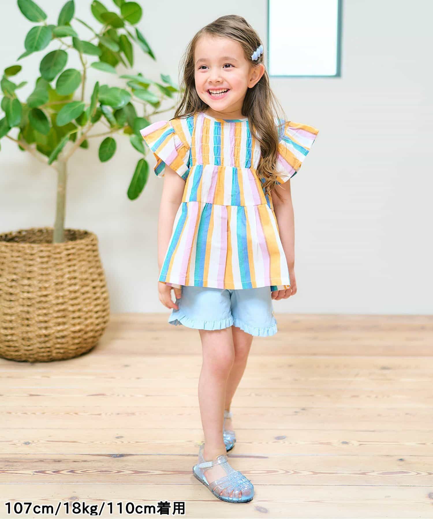 日本 apres les cours - 水陸兩穿 可愛荷葉邊短褲-繽紛小花-綠橘