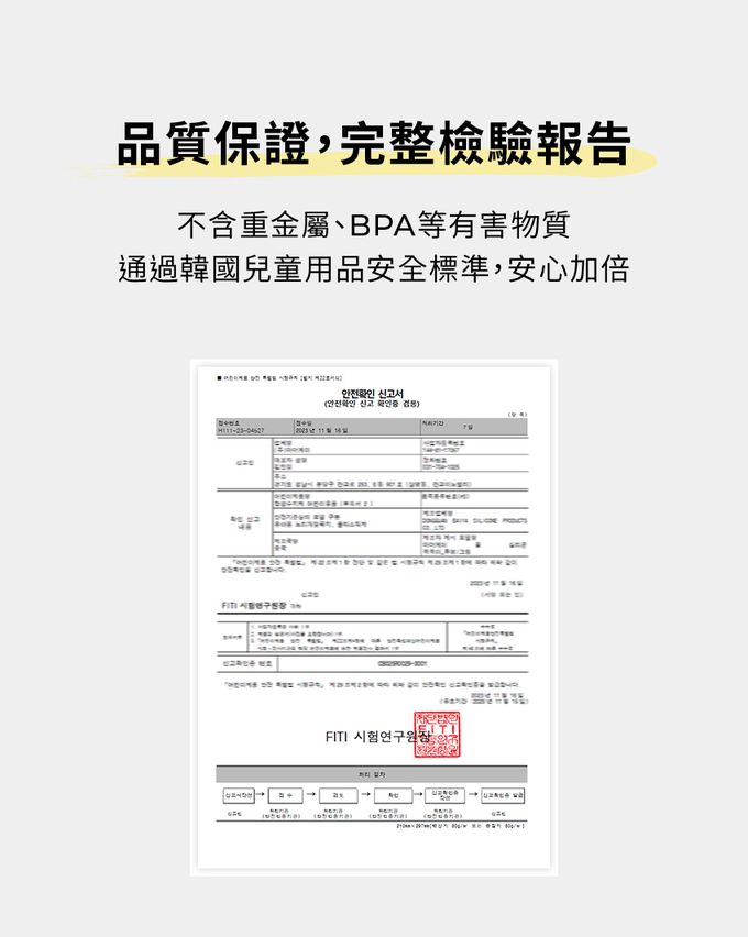 產品相關安全檢驗報告:不含重金屬、BPA等有害物質