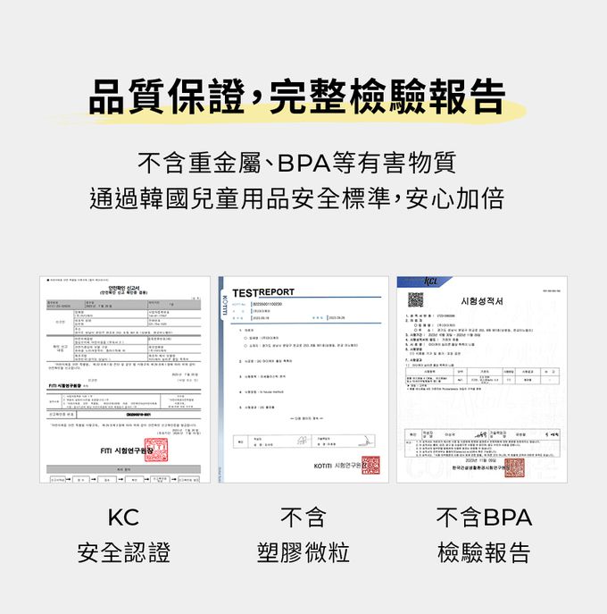 產品相關安全檢驗報告:不含重金屬、BPA等有害物質