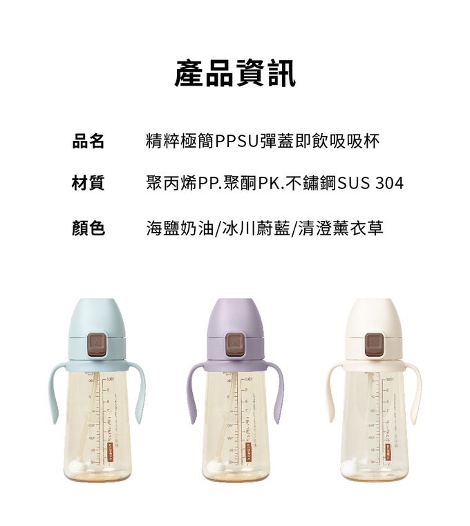 品名:精粹極簡PPSU彈蓋即飲吸管杯300ml