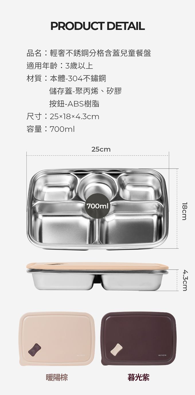 品名:輕奢不鏽鋼分格含蓋兒童餐盤