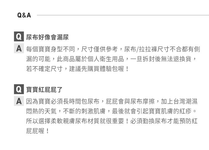 ⭐每個寶寶身型不同,尺寸僅供參考,尿布/拉拉褲尺寸不合都會有測漏的可能,此商品屬於 個人衛生用品,一旦拆封後無法退換貨!