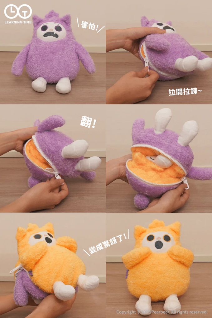 只需拉開拉鍊並翻轉,娃娃即可呈現不同表情