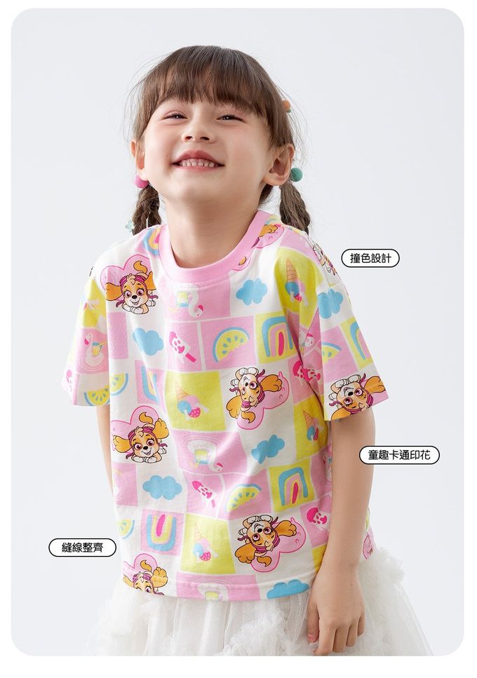 卡通汪汪隊純棉滿版印花圓領短袖上衣-卡通人物天天-粉色