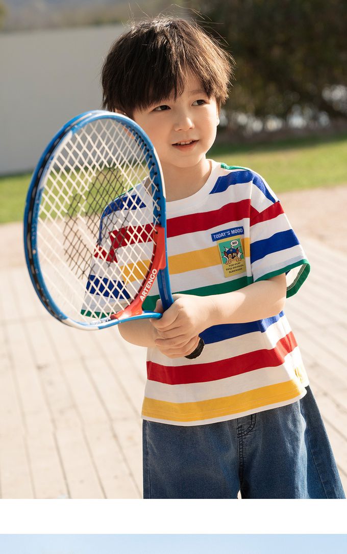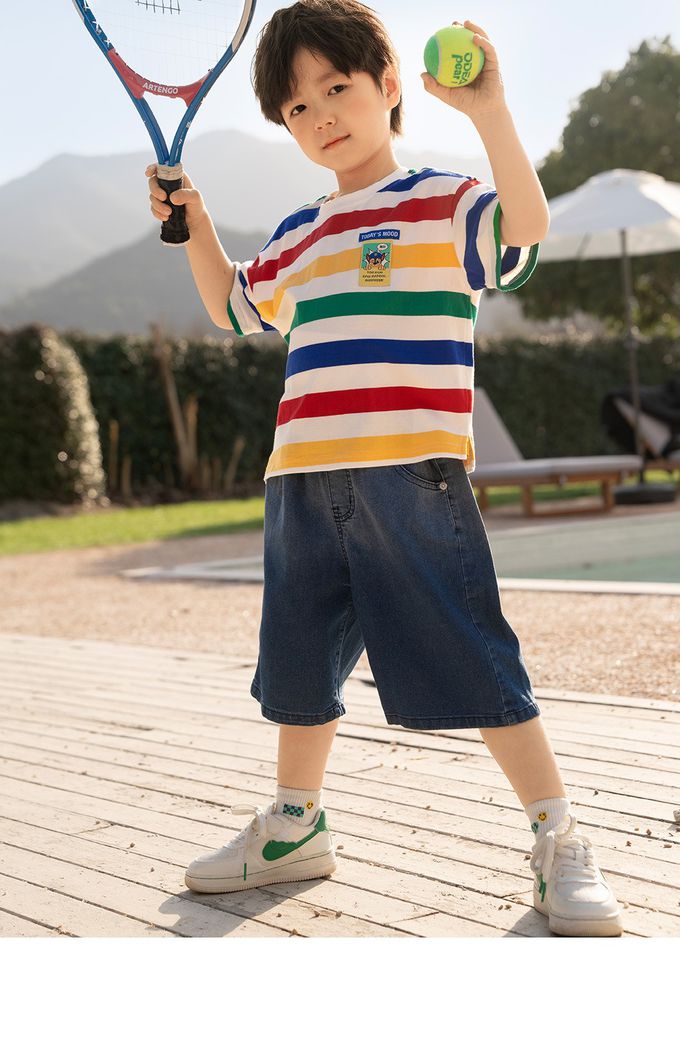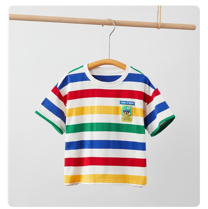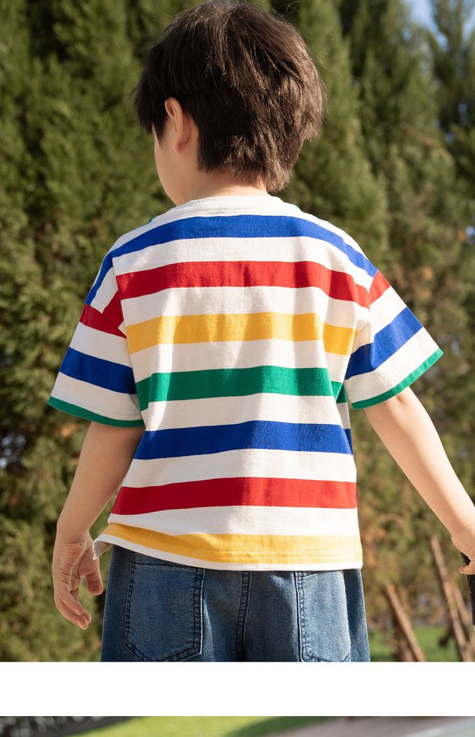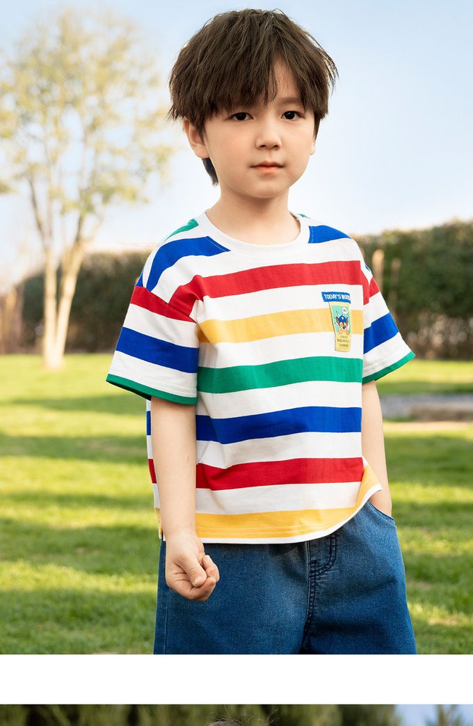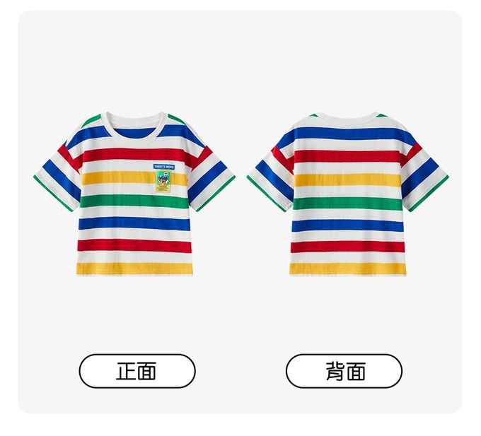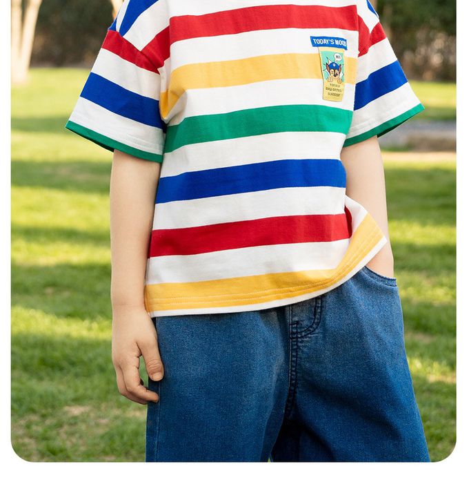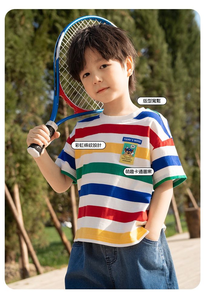 卡通汪汪隊條紋短袖上衣-卡通人物阿奇-彩虹