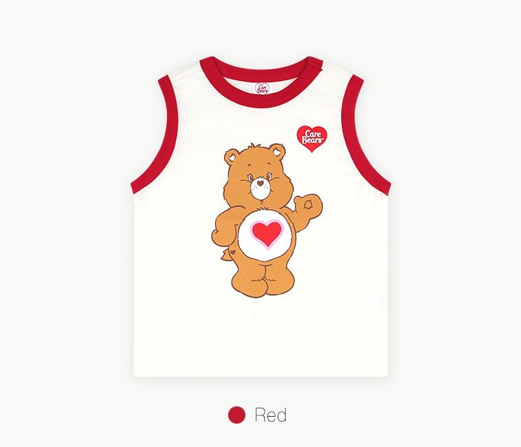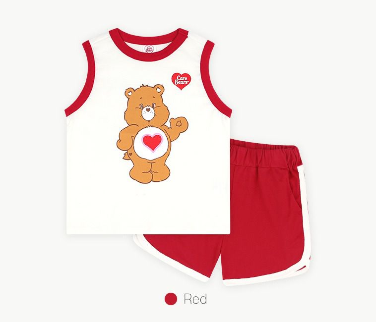 韓國 Care Bears - 聯名款大熊熊背心短褲套裝-愛心棕熊-紅