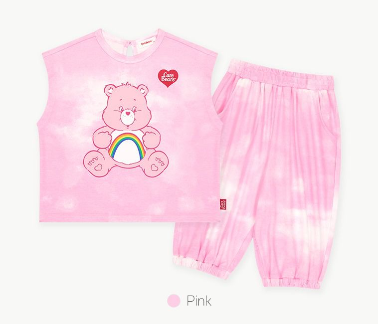 韓國 Care Bears - 聯名款暈染落肩上衣X七分褲套裝-彩虹粉紅熊