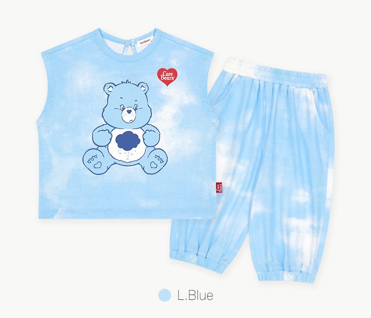 韓國 Care Bears - 聯名款暈染落肩上衣X七分褲套裝-憂鬱藍熊