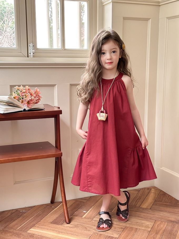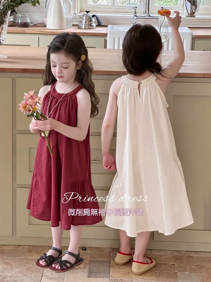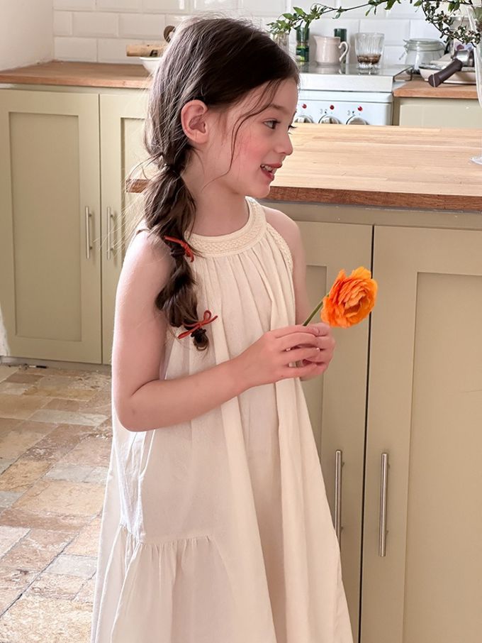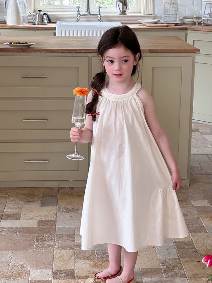 微削肩無袖中長版洋裝-編織滾邊-米色