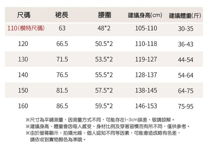 110cm、120cm、130cm、140cm、150cm、160cm