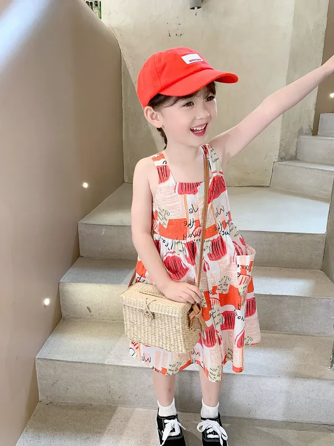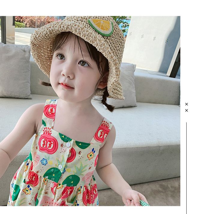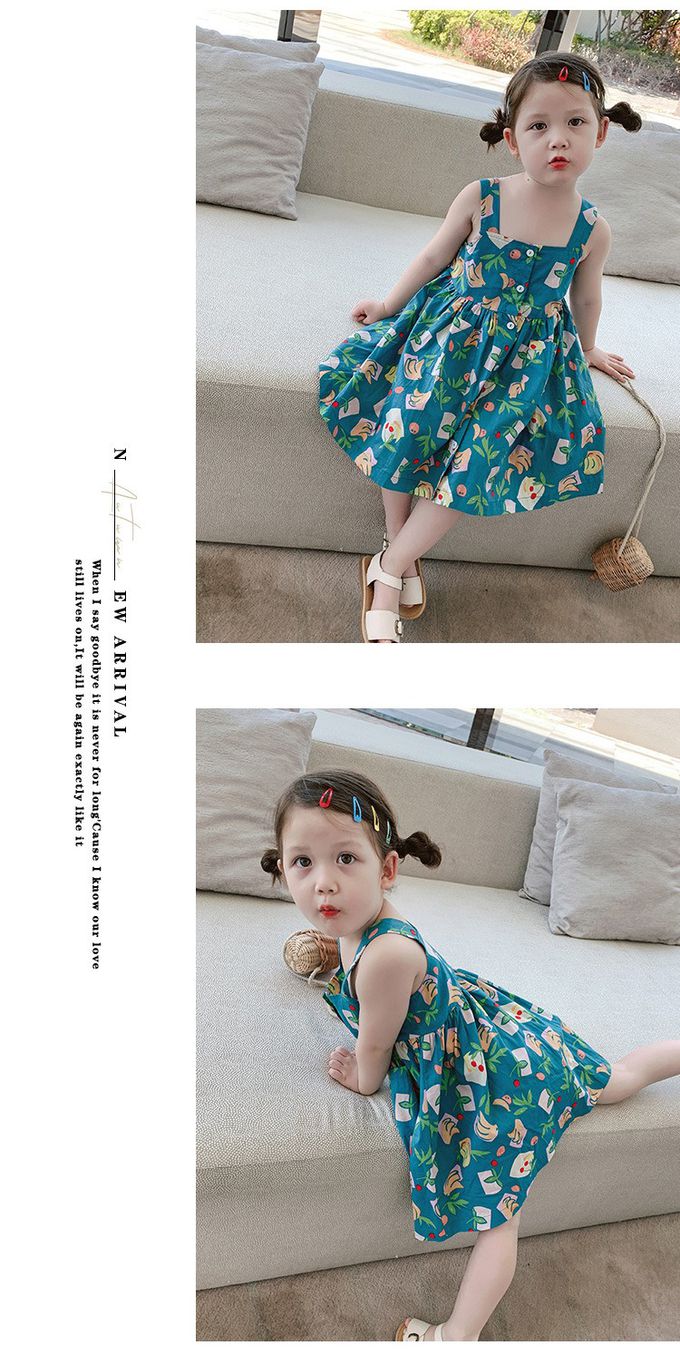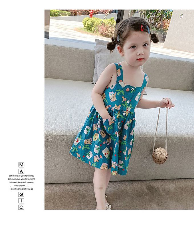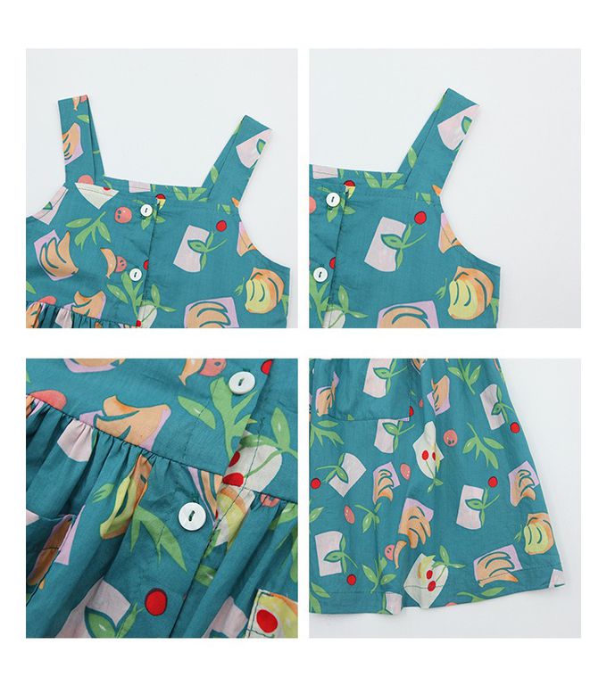 純棉開釦吊帶洋裝-滿版印花-黃杏色