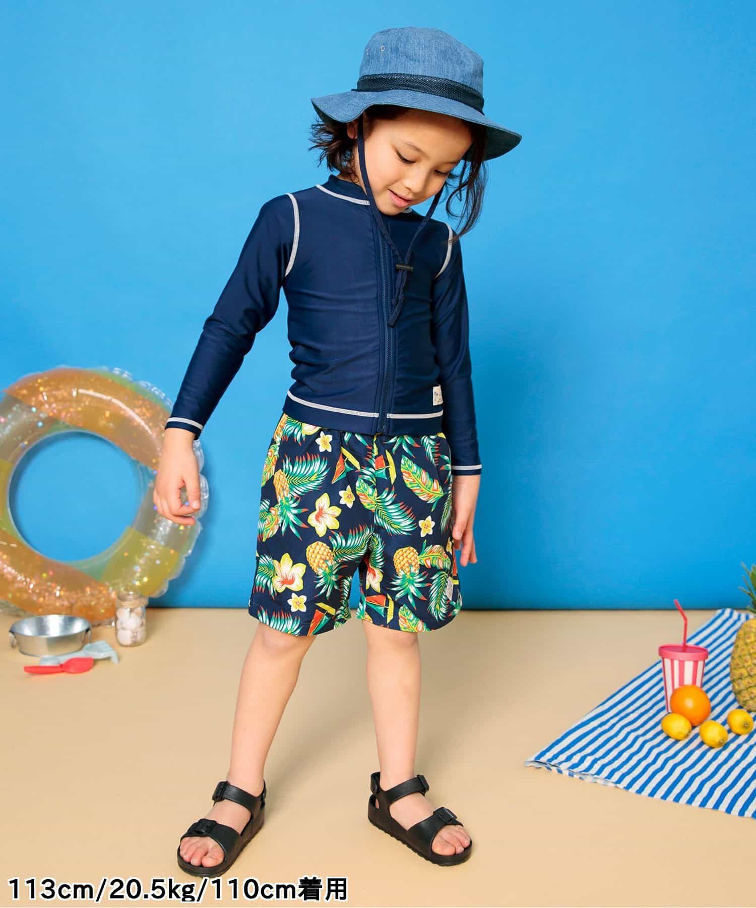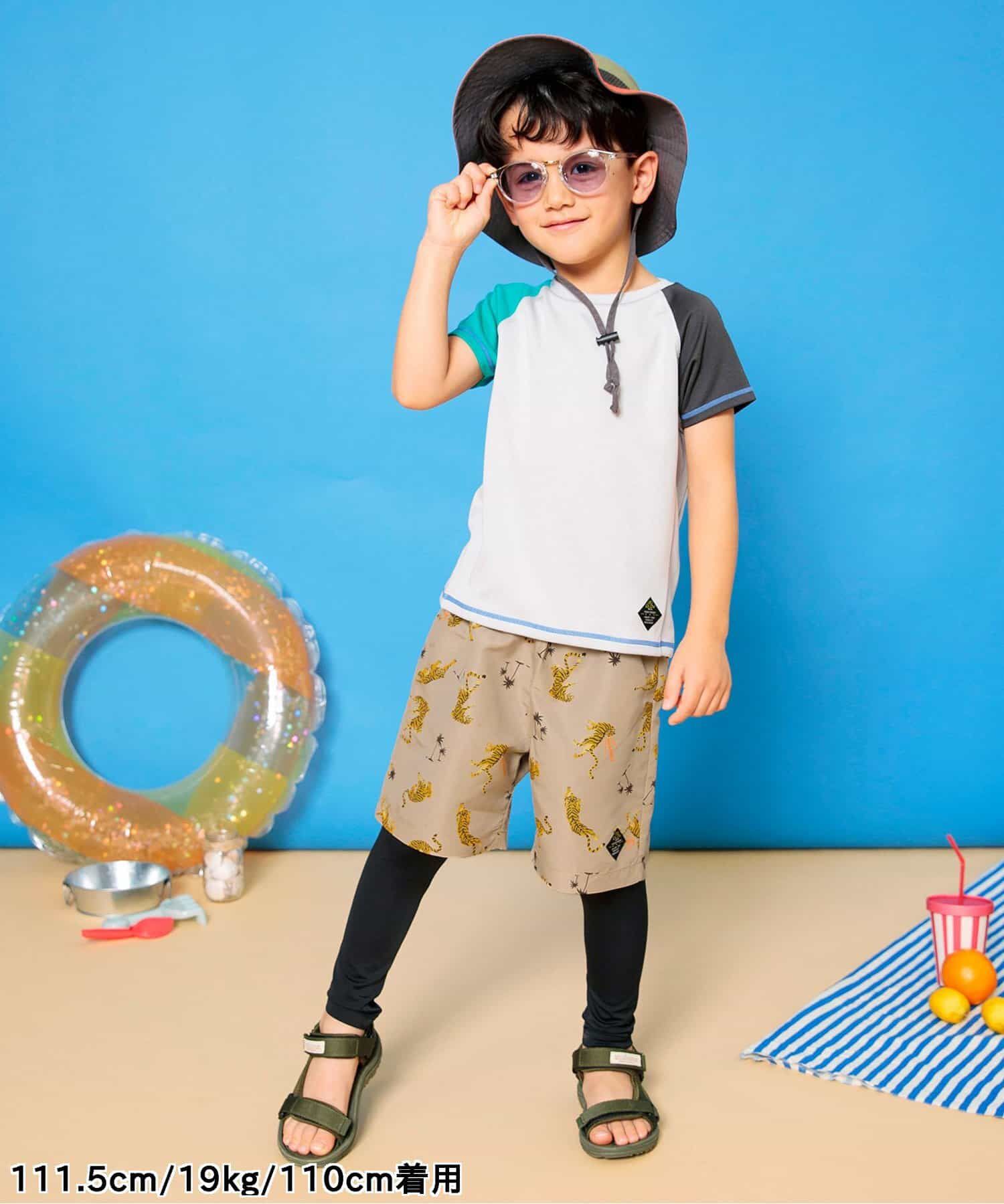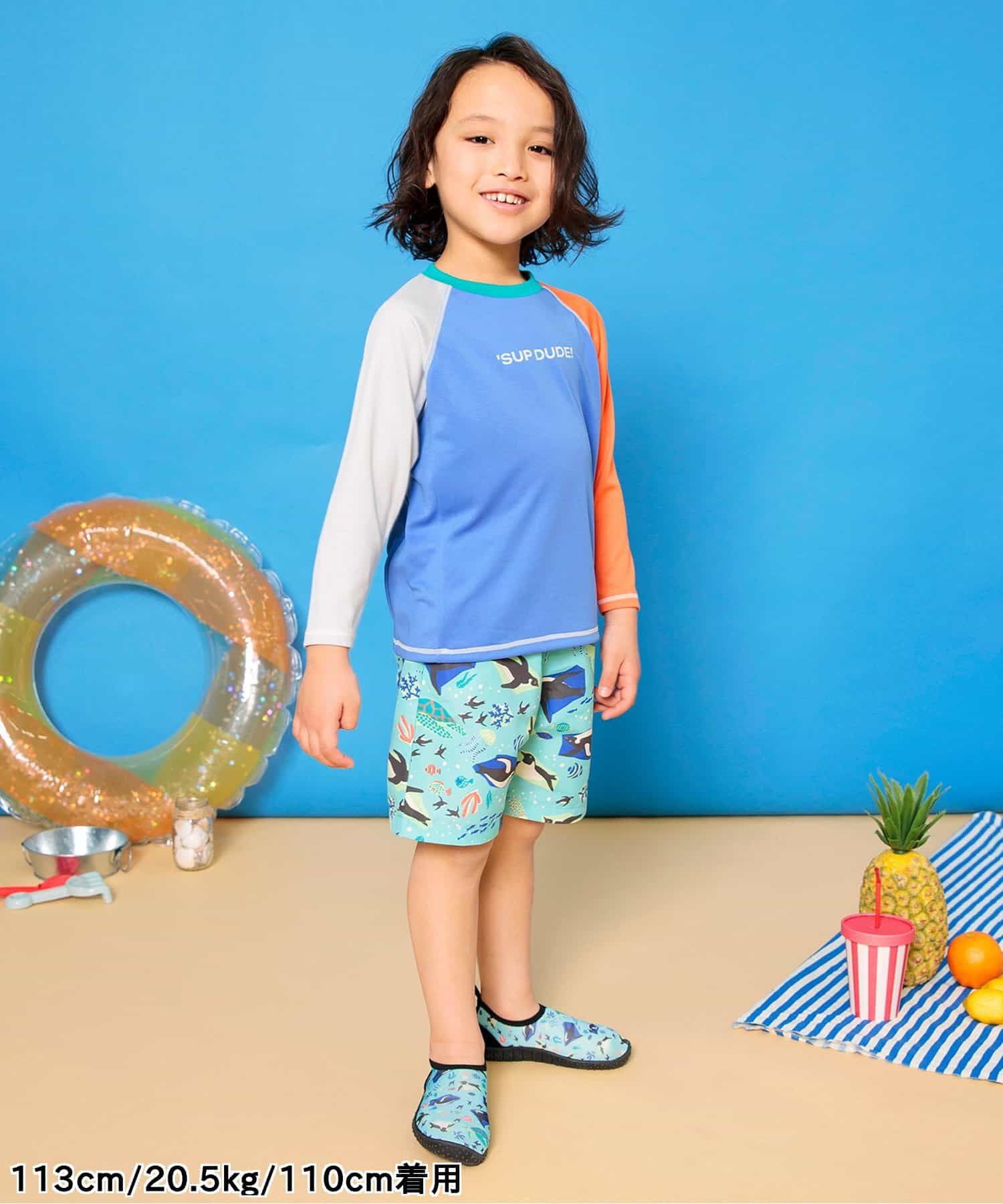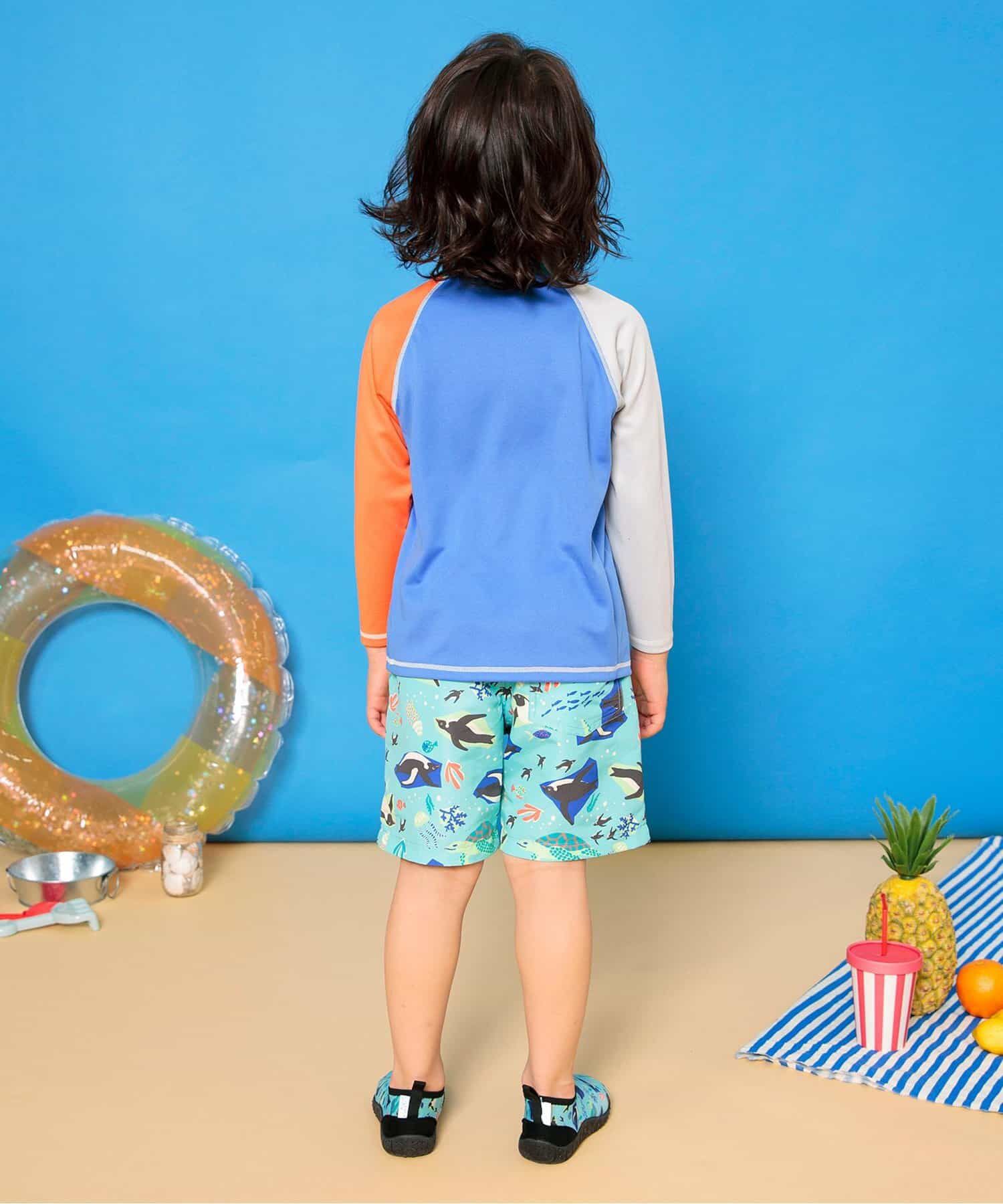 日本 BREEZE - 抗UV 繽紛印花沙灘褲/泳褲(含內褲)-企鵝-水藍