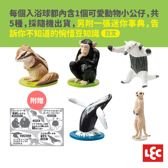 每個入浴球都內含1個可愛動物小公仔,共5種,採隨機出貨,就讓我們一起收集吧!