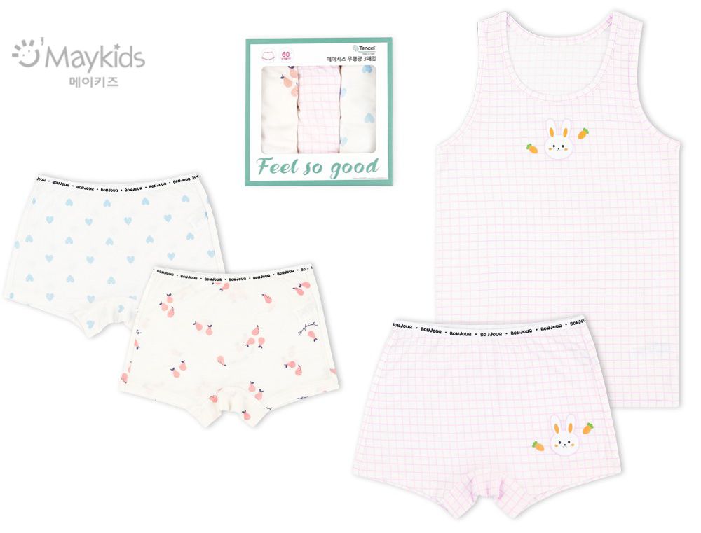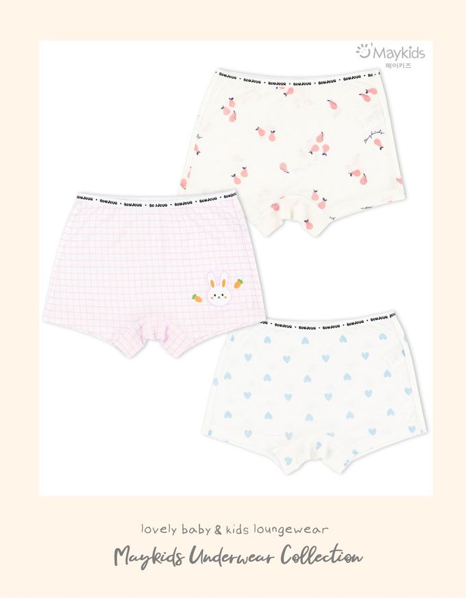 韓國 Maykids - (3入組)女寶天絲莫代爾透氣四角褲-紅蘿蔔兔兔