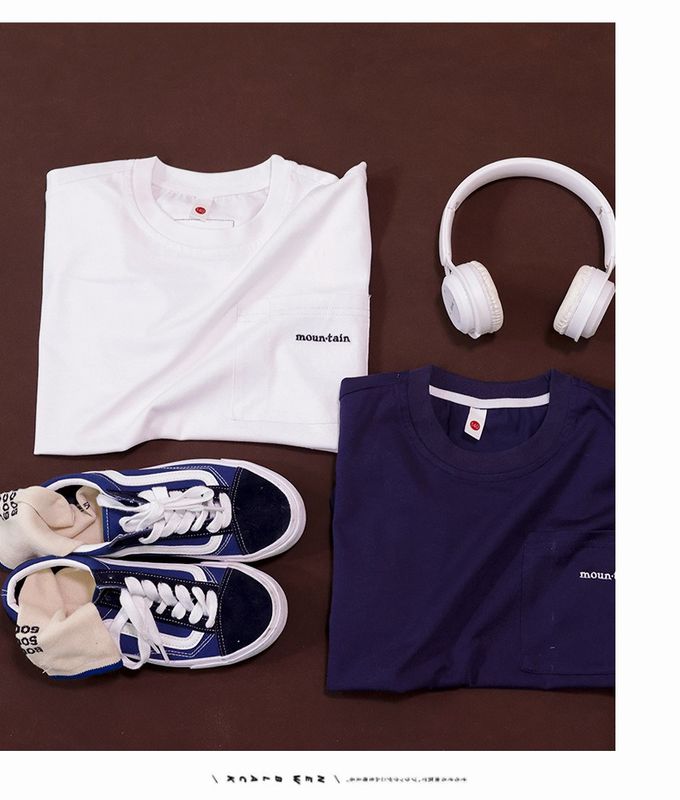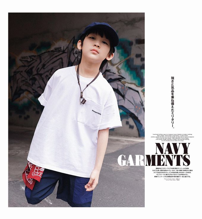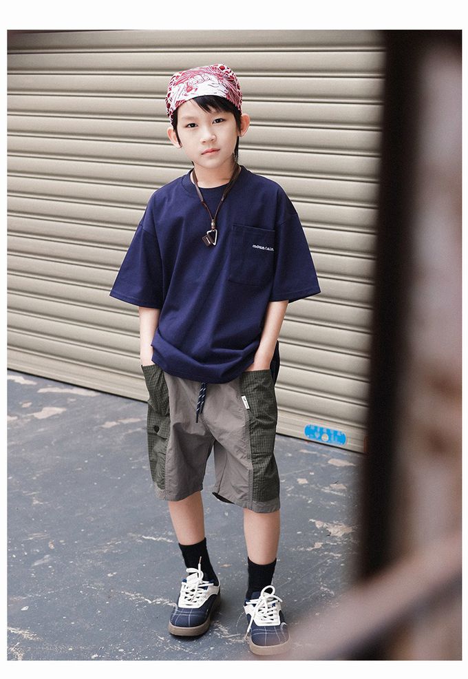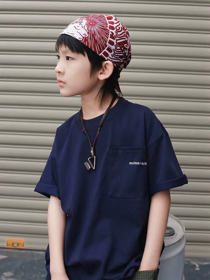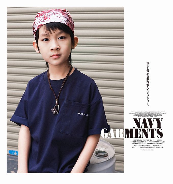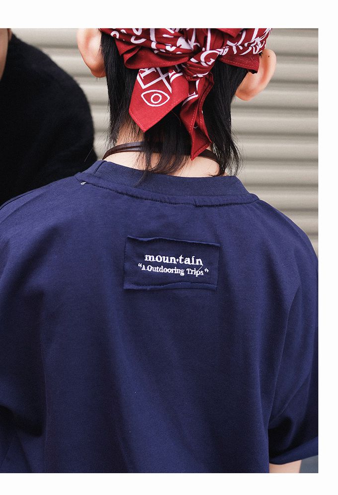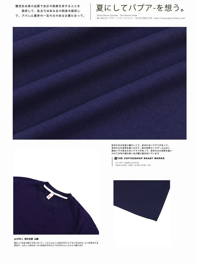 Y B S - 棉質圓領短袖上衣-不收編布標-藏青